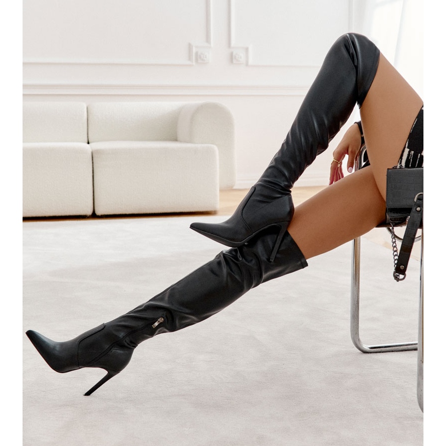 Nous vous présentons les élégantes et stylées bottes à talons hauts WS1 en noir, qui deviendront certainement un élément indispensable de votre garde-robe. Ces cuissardes pour femmes sont fabriquées en cuir écologique de haute qualité, ce qui garantit durabilité et confort de port.