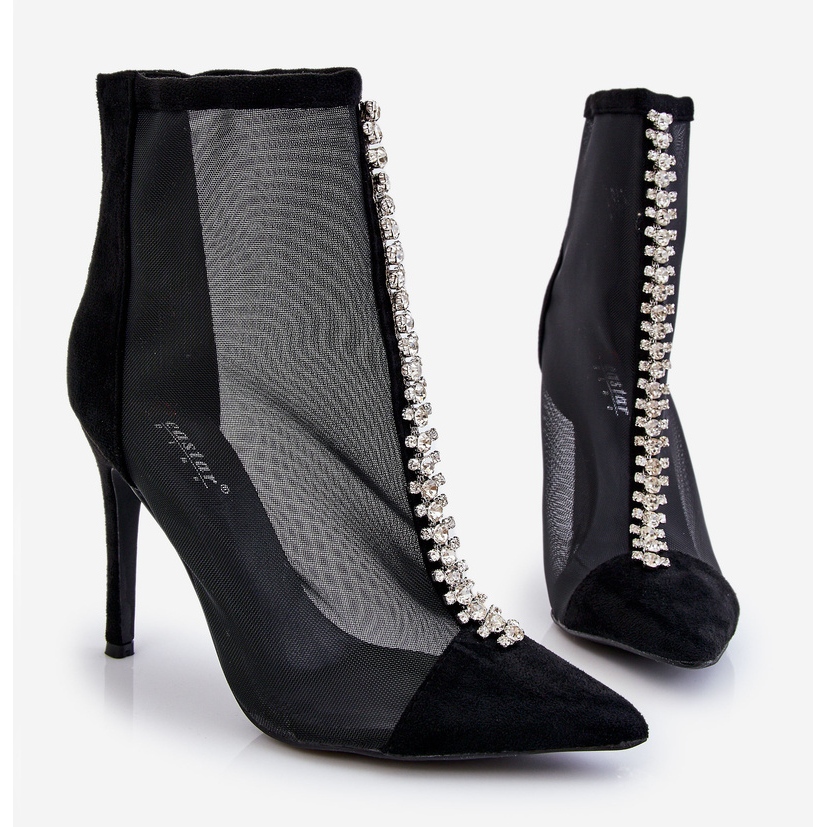 Détails: Bottes à talons hauts pour femmes à la mode avec maille noire Rummi