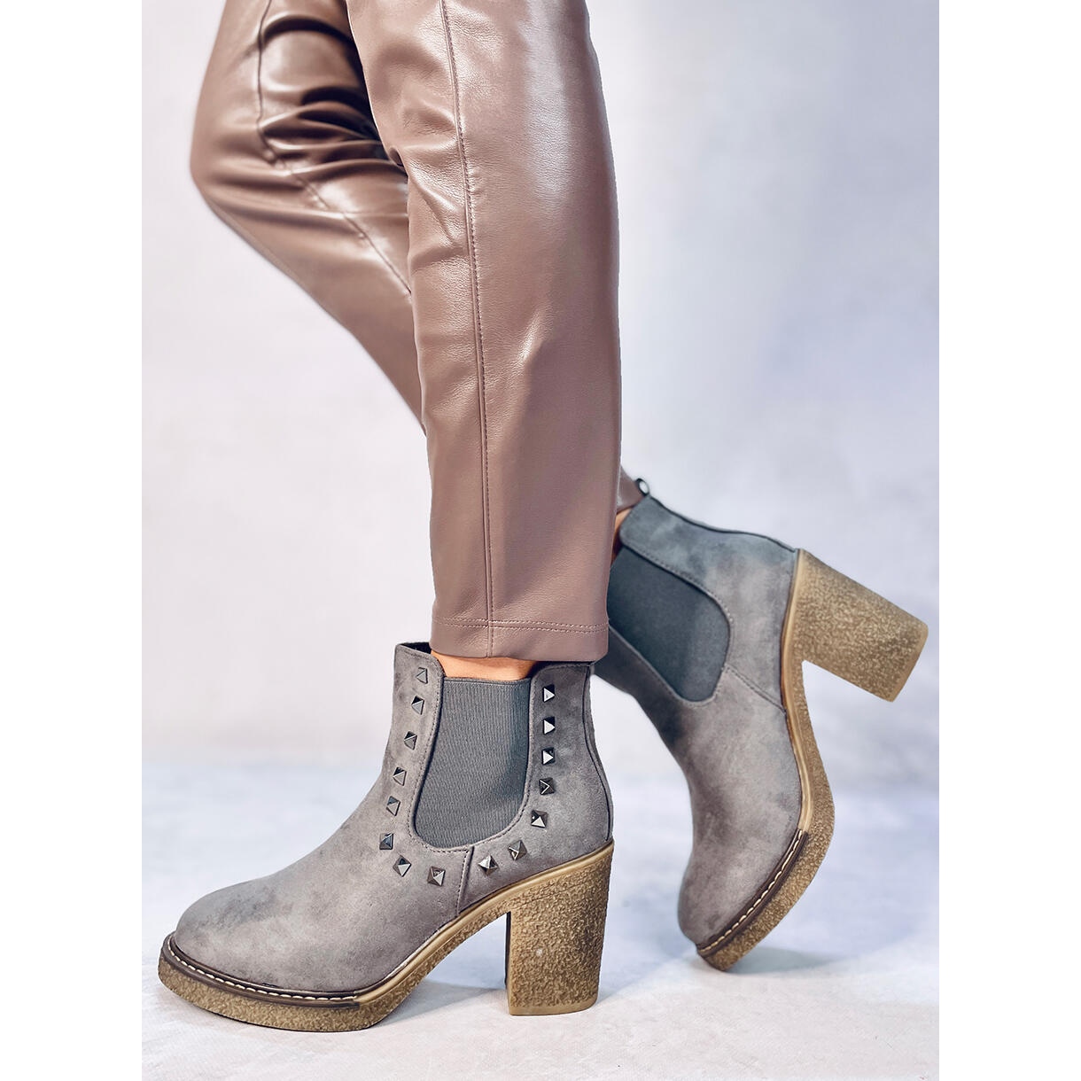 Êtes-vous à la recherche de bottes qui combineront le confort avec un personnage rock? Hidalgo Gray est une proposition pour les femmes qui apprécient chaque jour l'apparence et le réconfort à la mode. Des bottes grises de Jodhpur en daim écologique agréable au toucher sont distinguées par des goujons décoratifs placés à des inserts flexibles - un accent classique de poignard avec un détail moderne et courageux.