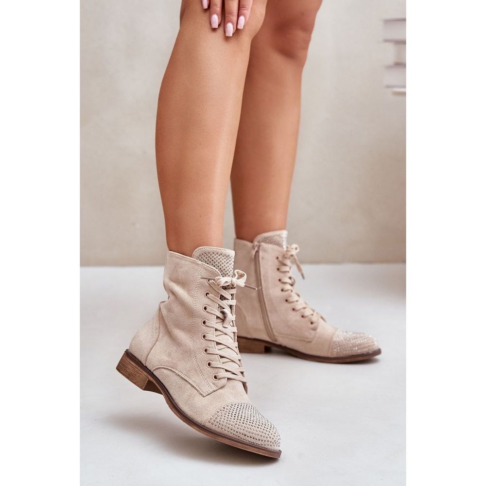 Les bottes de château facilitent non seulement la mise en place, mais ajoutent également un personnage moderne. L'intérieur abrité avec une couverture de chaussures protège efficacement contre le froid, ce qui en fait une proposition parfaite pour l'automne et l'hiver. Des décorations subtiles sur la tige sous forme de strass attirer l'attention et donner aux chaussures un style unique, grâce à laquelle ils se mélangent parfaitement avec diverses stylisations d'automne-hiver.