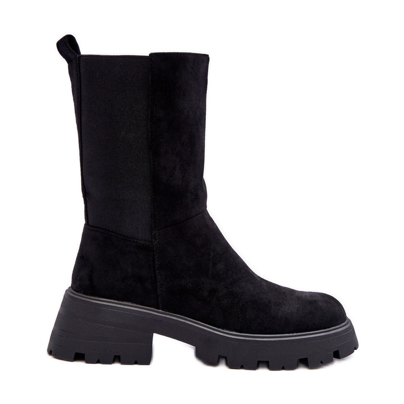 Fabriquées en éco-suède de haute qualité, ces bottes impressionnent par leur tige plus haute et leur bout rond discret. Une fermeture éclair sur le côté facilite l'enfilage et le retrait, ce qui les rend encore plus pratiques. Un talon massif et plat de 6 cm et une plateforme avec rainures assurent stabilité et confort de port tout au long de la journée.