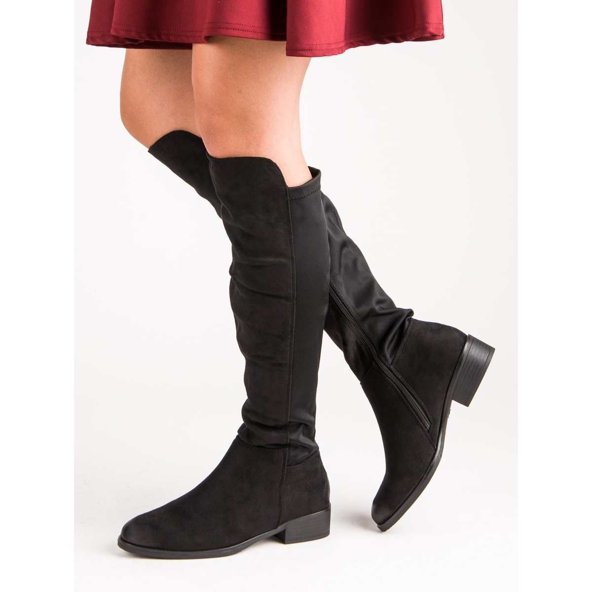 Ces bottes hauteur genou se caractérisent par un bout rond discret et un talon souple intégré qui assure un confort tout au long de la journée. Le talon plat de 4 cm de haut vous permet de bouger librement dans diverses situations – aussi bien au travail, à l'université que lors de réunions entre amis.