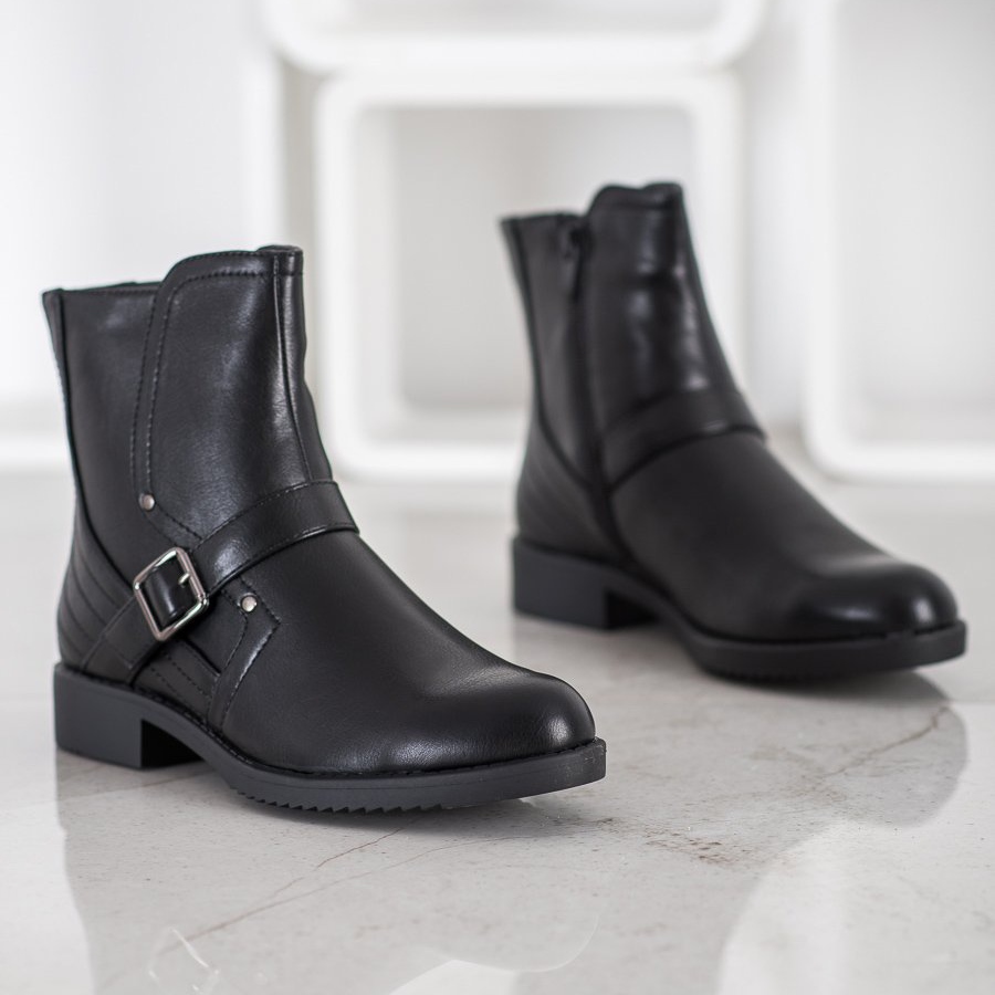 Le talon plat de 3 cm de haut fait de marcher avec un véritable plaisir, même lors de longues promenades. La tige jusqu'aux chevilles est équipée d'une fermeture éclair à l'intérieur, ce qui facilite l'enfilage et le retrait des chaussures. Un avantage supplémentaire est une sangle décorative avec une boucle, qui donne aux chaussures un caractère tendance.