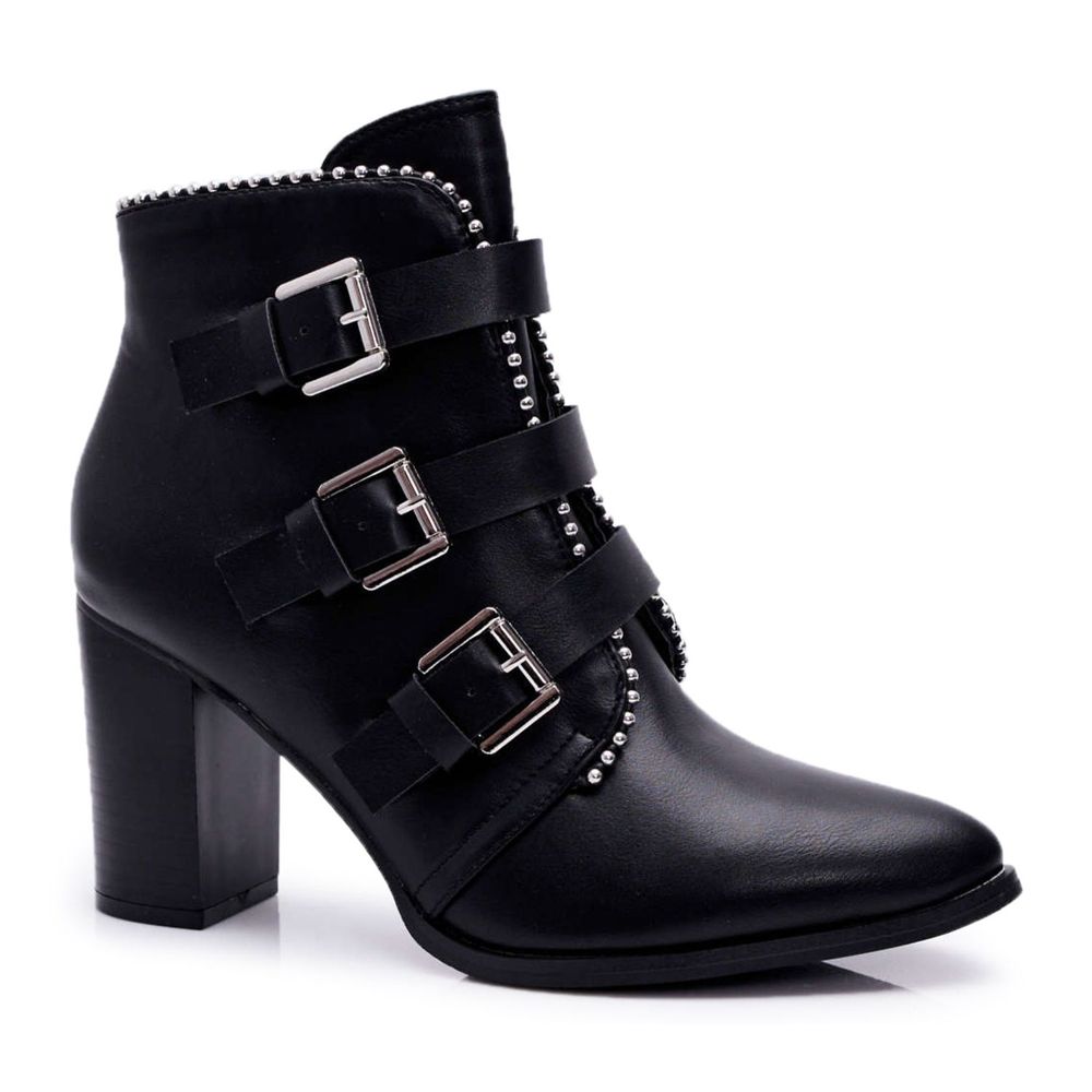 Détails: FJ1 Bottes À Talons Pour Femmes Avec Boucles Noir Finbas