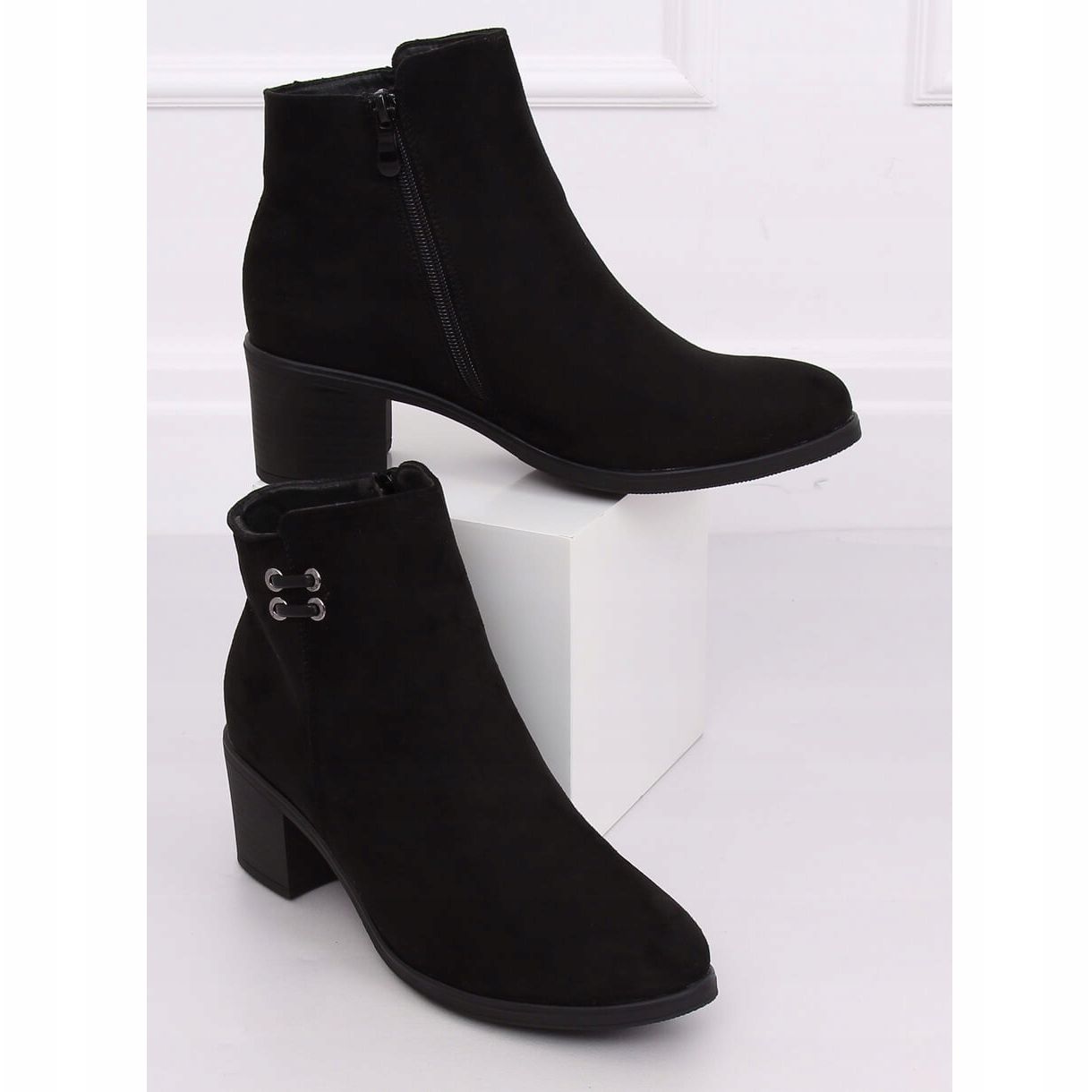 Bottines noires à talons pour femme 8B982 Black - l'élégance dans un style en daim
