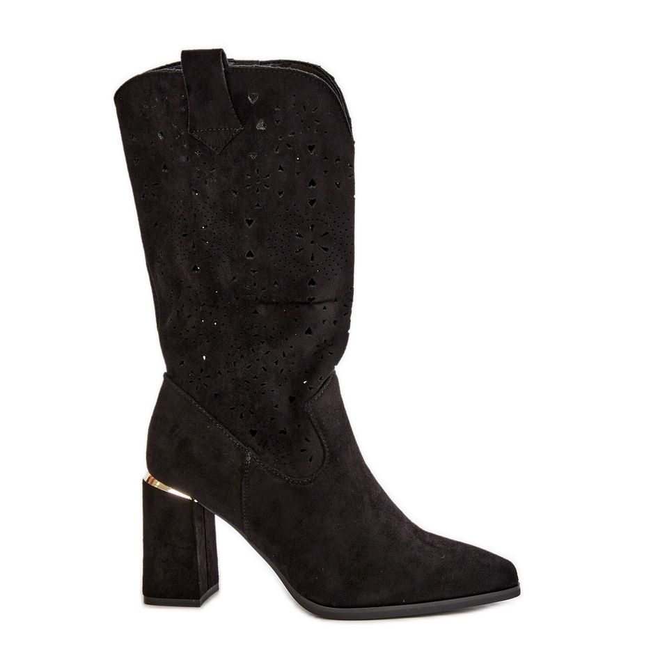 Détails: Bottes Ajourées Pour Femmes Sur Talon Haut À Bouts Pointus, Eco Daim Noir Nevithra
