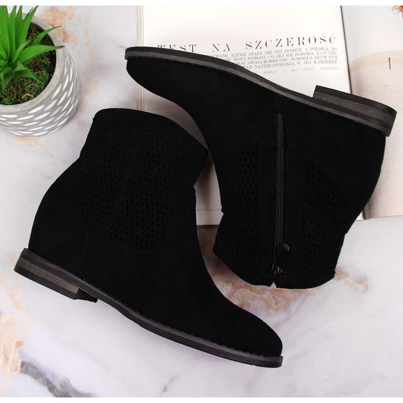 Ce modèle se distingue par une cale cachée de 5 cm de haut, qui fait paraître les jambes plus fines et assure en même temps stabilité et confort. Grâce à la fermeture éclair, enfiler et enlever les bottes devient facile et rapide. Le motif ajouré ajoute de la légèreté et en fait un choix parfait pour les journées de printemps ou d'été.