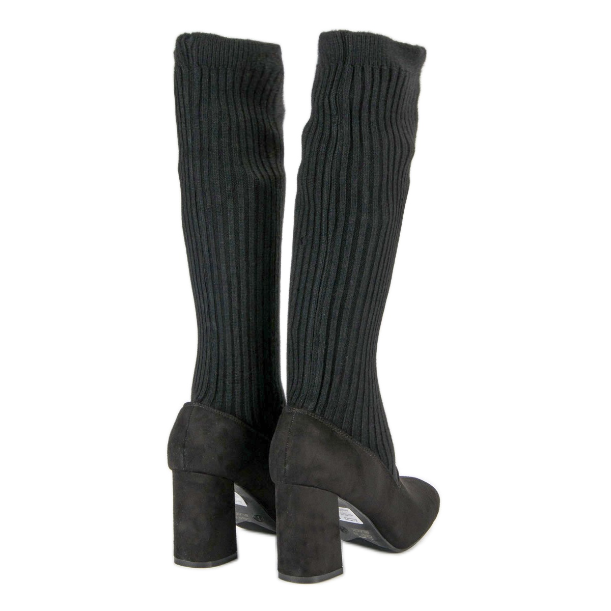 Ce sont des bottes uniques de la marque Seastar, qui sont un incontournable pour toute femme courageuse qui valorise l'originalité et le style. Ces bottines noires ajustées se distinguent par un talon haut de 8,5 cm et une tige en matière imitant une chaussette jusqu'aux genoux, ce qui leur confère un caractère unique dans les chaussures automne-hiver.