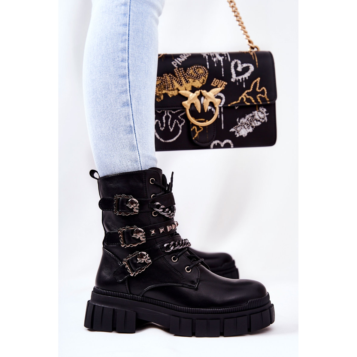 Détails: WS1 Bottes Attachées Chaîne Boucle Noir Reiloy