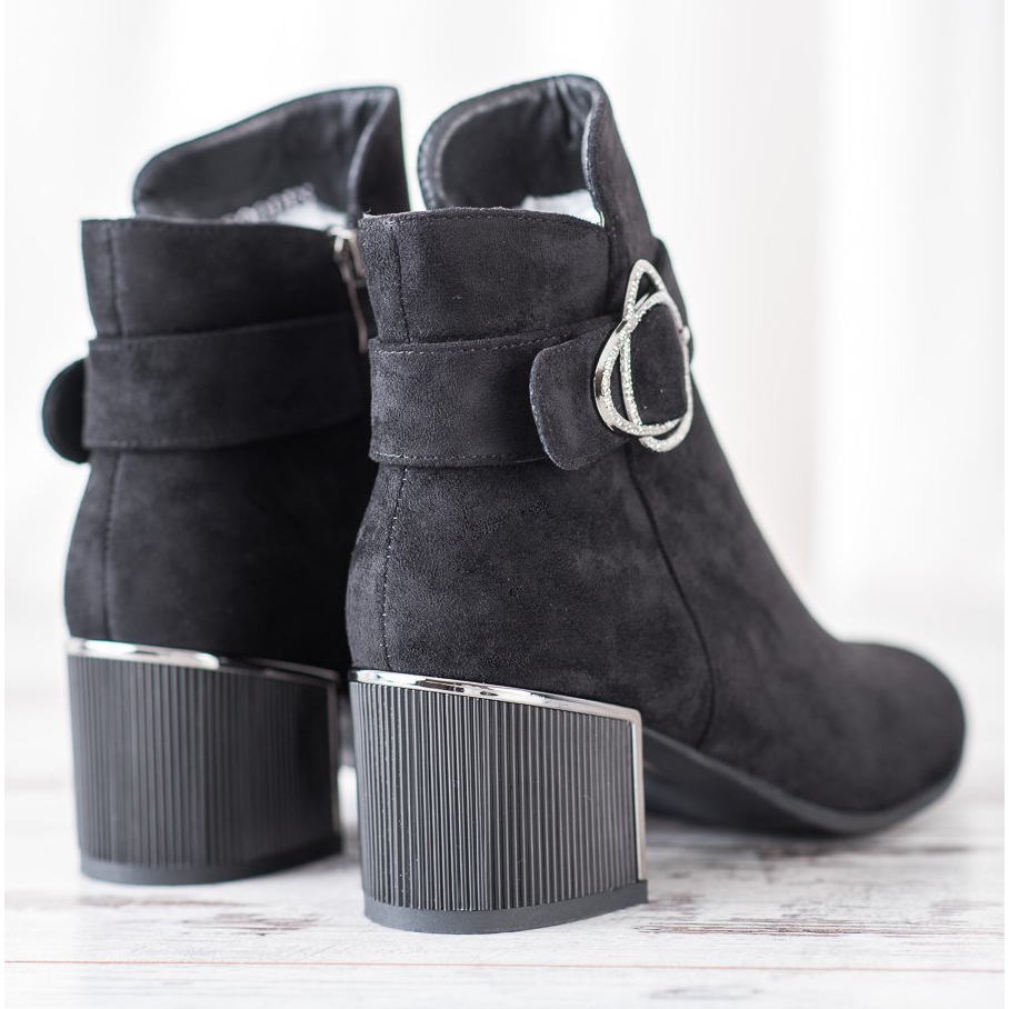 Les bottes sont fabriquées en cuir suédé écologique de haute qualité, qui assure à la fois un aspect esthétique et un confort de port. La hauteur supérieure est de 10 à 11 cm et une isolation supplémentaire garde vos pieds au chaud même par temps froid. Le bout rond et le talon renforcé et intégré garantissent le confort, et la semelle synthétique est lisse, ce qui ajoute de l'élégance.