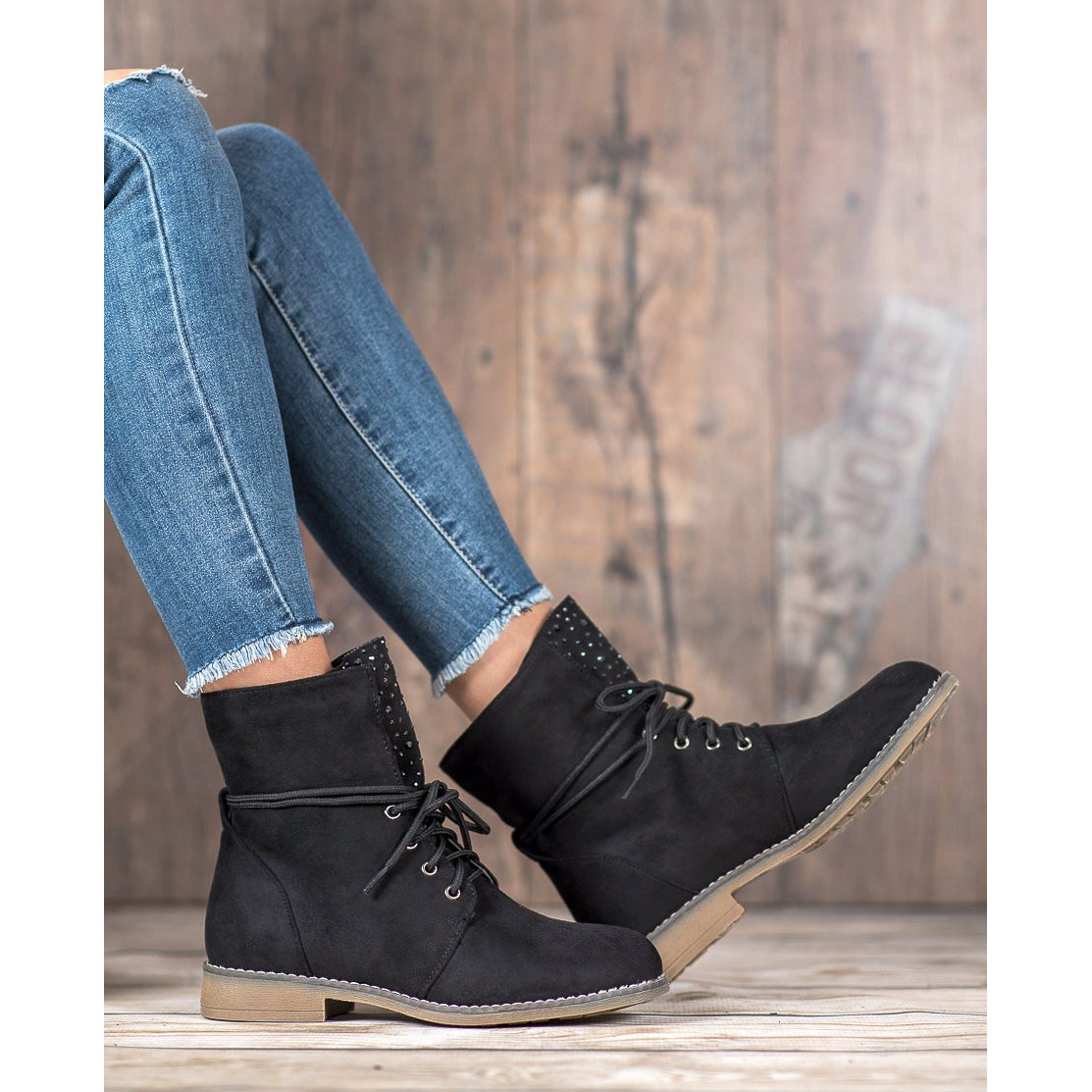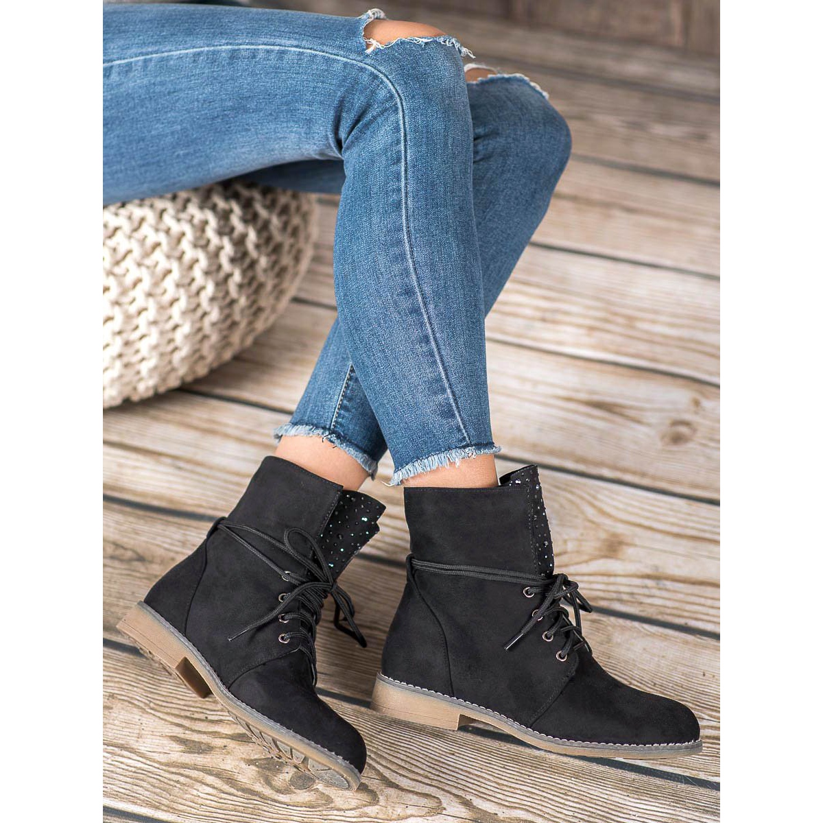 Découvrez l'élégance avec des bottines noires à strass ! Ces chaussures uniques à la coupe classique s'intègrent parfaitement dans de nombreux styles différents, aussi bien au quotidien que pour les occasions spéciales. Fabriqués en cuir suédé écologique de haute qualité, ils garantissent un confort de port, ce qui en fait un choix idéal pour l'automne et l'hiver.