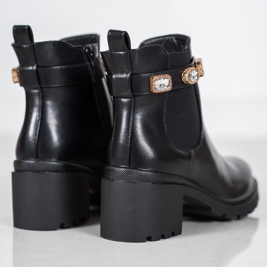 Nous vous présentons des bottines Seastar uniques avec des cristaux qui allient élégance et confort. Fabriquées en cuir écologique de haute qualité, ces bottines noires sont un excellent choix pour la saison automne/hiver. Une plateforme solide de 2 cm de haut et un talon bloc de 6,5 cm de haut garantissent un port confortable, même pendant les longues journées.
