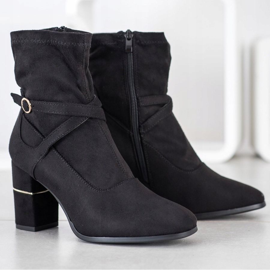 Découvrez l'élégance et le confort avec les bottines Goodin à empiècement doré ! Ces bottines noires sont fabriquées en cuir suédé écologique, ce qui les rend non seulement élégantes, mais également respectueuses de l'environnement. Une fermeture éclair sur le côté permet de l'enfiler et de l'enlever facilement, et la sangle décorative entrelacée avec une boucle dorée ajoute un caractère chic et unique.