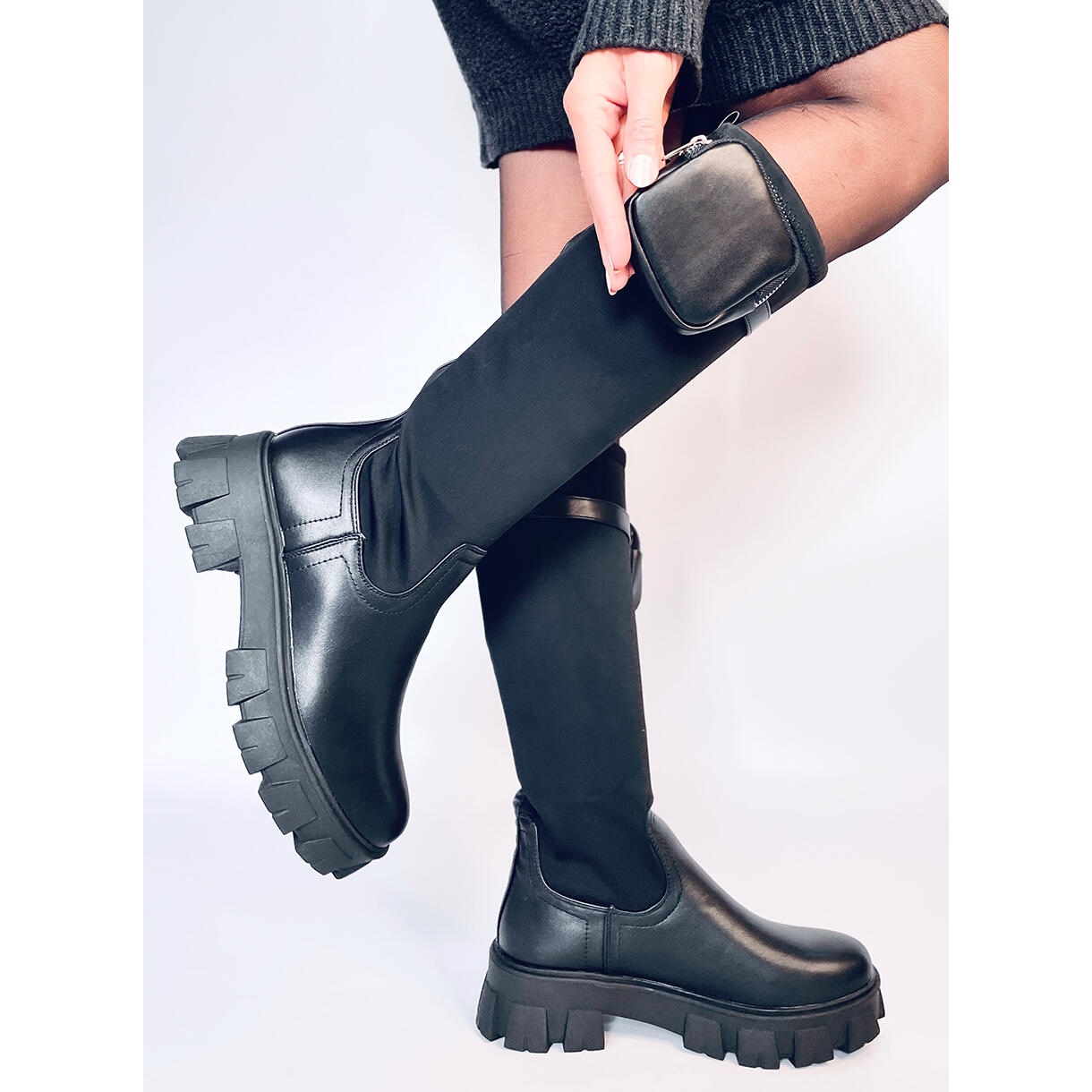 Ce sont des bottes pour femmes - des bottes d'une couleur noire classique qui s'adaptent parfaitement à tous les styles et à toutes les occasions. Les bottes se caractérisent par une semelle épaisse et un bout rond. Ils sont fabriqués en tissu néoprène et en cuir écologique, ce qui garantit résistance et durabilité. De plus, les bottes ont un ajout à la mode : une pochette amovible.
