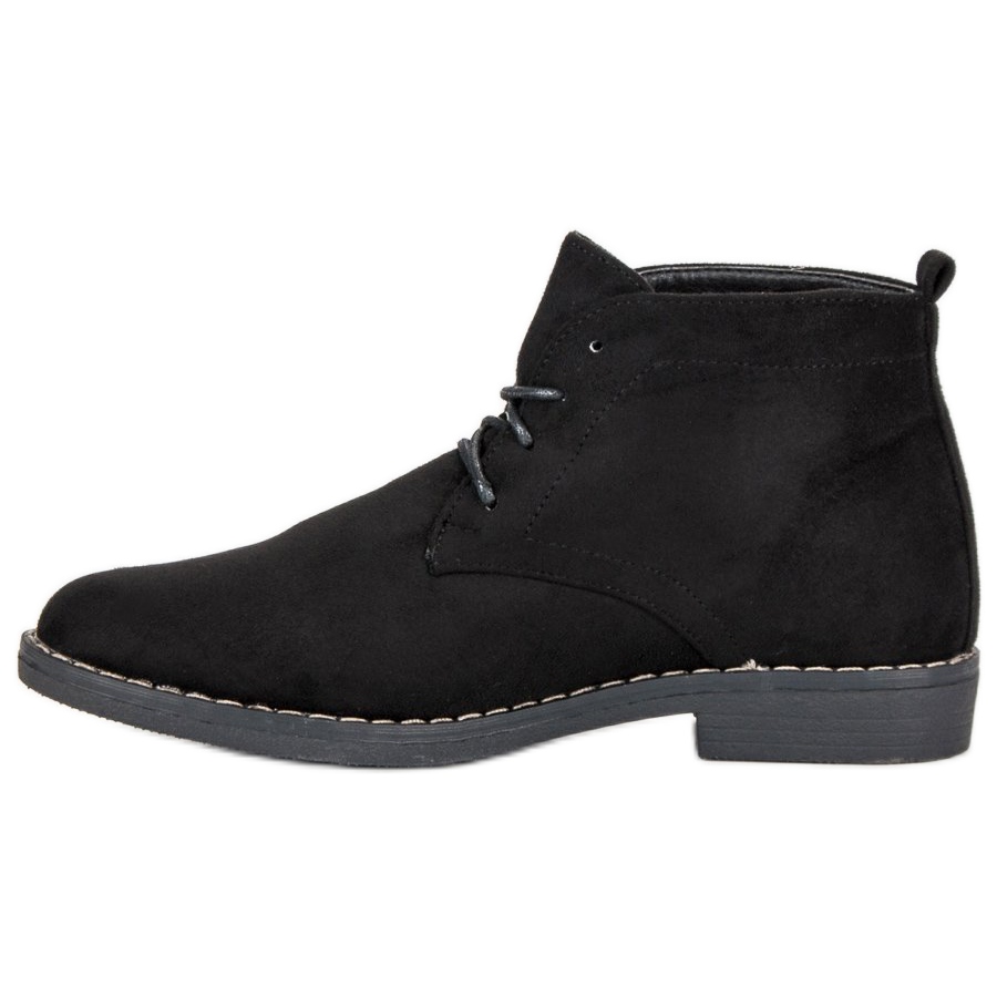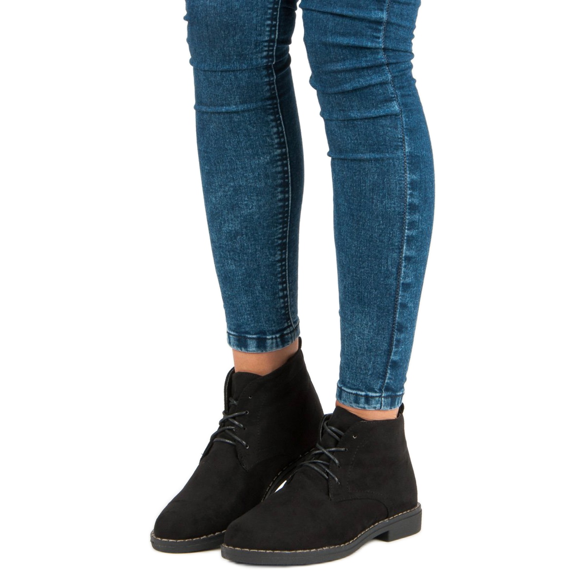 Ce sont des bottines basses à lacets noires qui allient confort et élégance au plus haut niveau. Fabriquées en daim écologique de haute qualité, ces bottines sont parfaites pour les journées froides, offrant non seulement un look élégant, mais aussi un confort de port. Elles ont un talon plat d'une hauteur de 2,0 cm, ce qui en fait un choix idéal pour un usage quotidien.