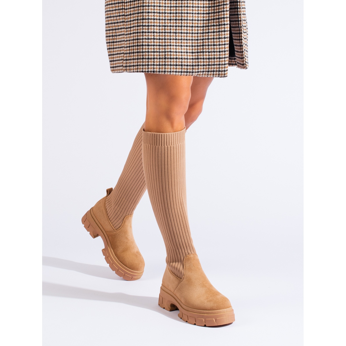 Modèle: Bottes des femmes avec une tige flexible - beige. Idéal pour ceux qui recherchent une combinaison de classiques, de confort et de chaleur chaque jour.