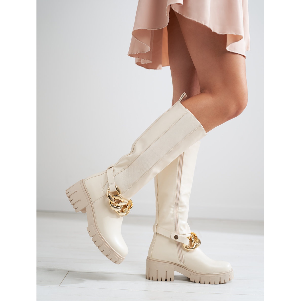 Détails: Bottes beiges pour dames sur une semelle épaisse Shelovet en cuir écologique