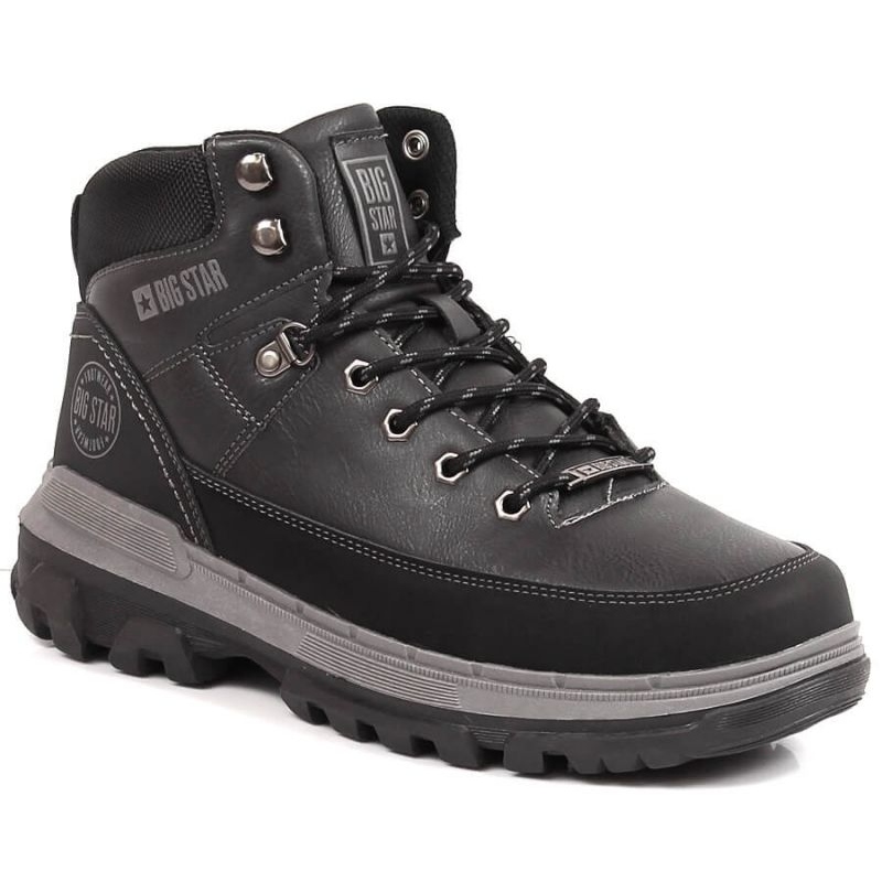 Bottes Big Star INT1801C - Chaussures masculines noires, élégantes et universelles créées pour un usage quotidien. Le modèle de cheville combine l'esthétique urbaine avec des solutions pratiques: laçage pour l'ajustement parfait, une doublure textile pour le confort et une semelle en caoutchouc qui offre une bonne adhérence. Fabriqué en matériaux synthétiques de haute qualité, en noir élégant et universel - facile à combiner avec divers styles.