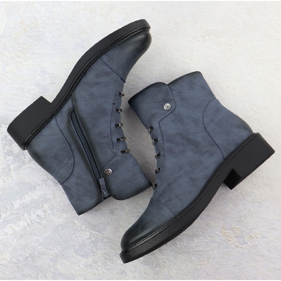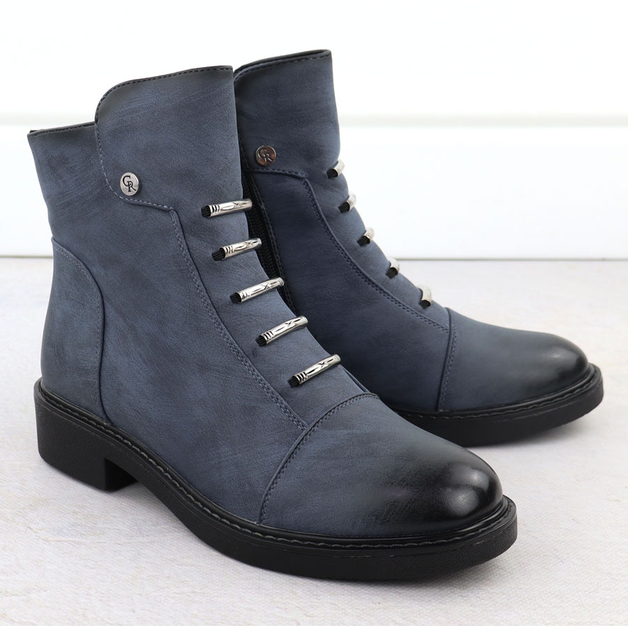 La couleur bleue d'origine fait que les bottes se mélangent bien avec diverses stylisations - à la fois décontractées et plus élégantes. Grâce à leur universalité, ils sont un complément parfait à la garde-robe d'automne et d'hiver.