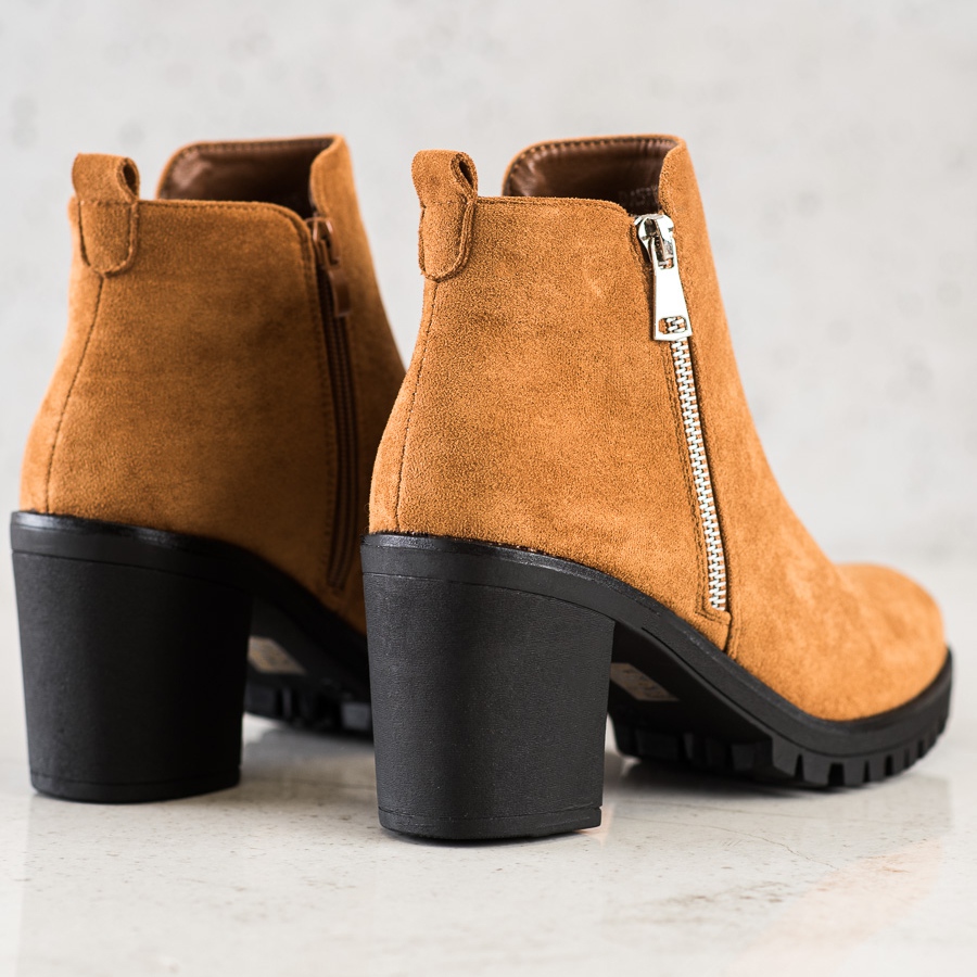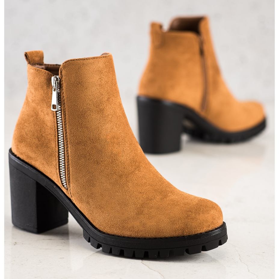 Les bottes sont fabriquées en imitation daim de haute qualité, ce qui leur donne un look élégant et assure en même temps un confort de port. L'isolation les rend adaptées même par temps froid, et le talon renforcé garantit stabilité et confort. Une fermeture zippée avec curseur décoratif donne du caractère aux chaussures et facilite leur enfilage.