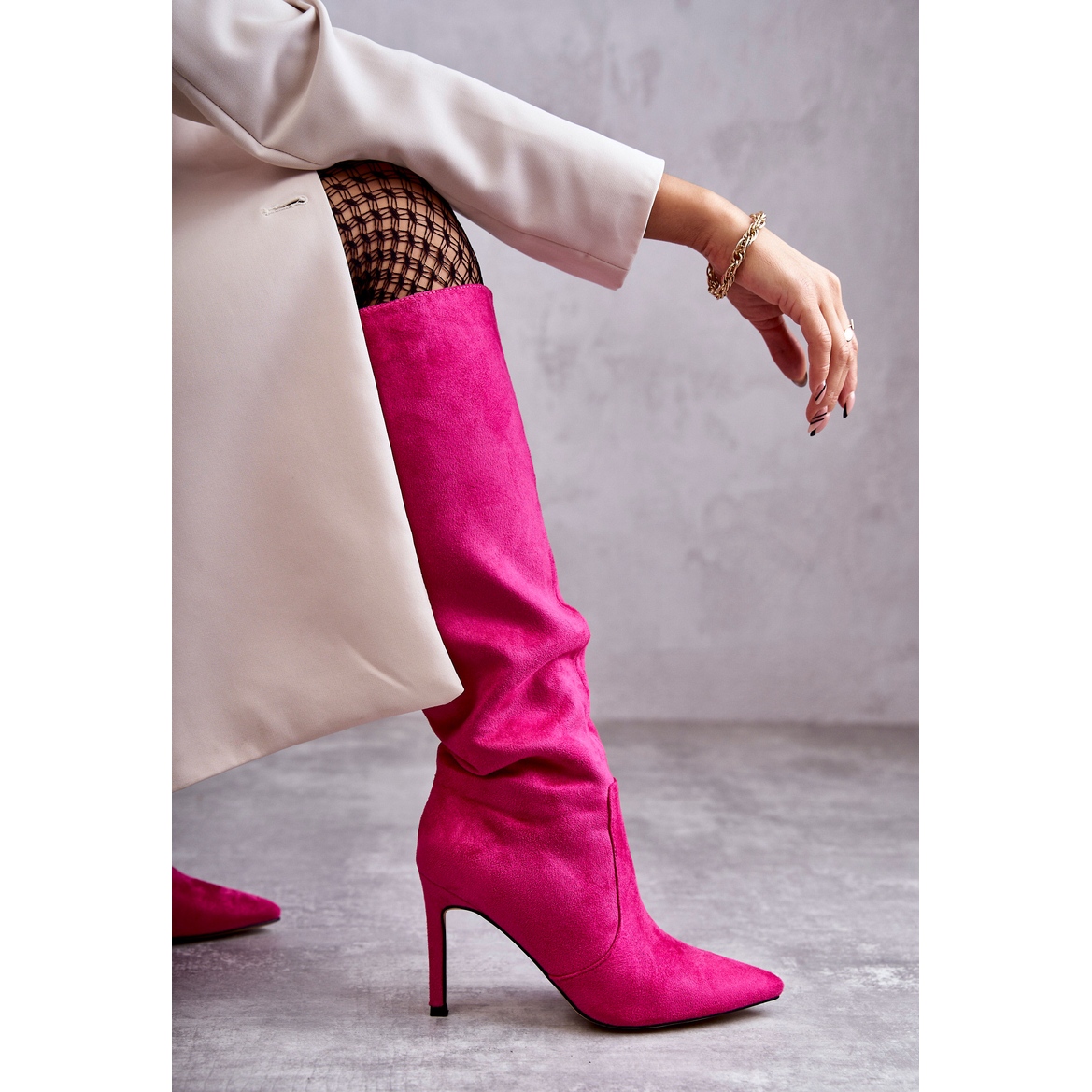 - Modèle: Bottes Carité Rose En Daim Sur Talon Haut