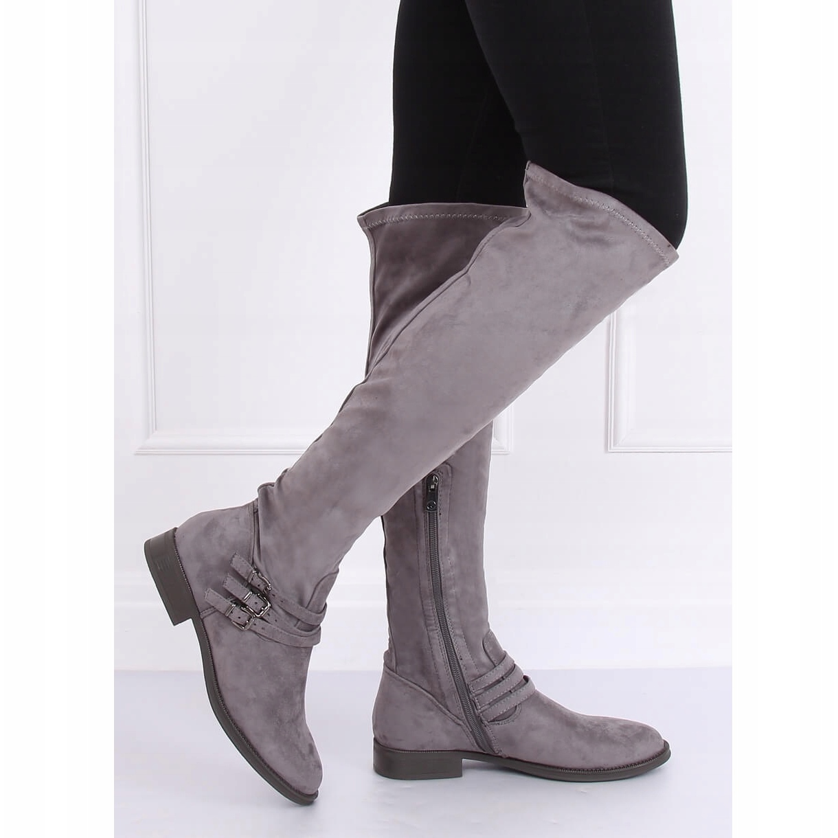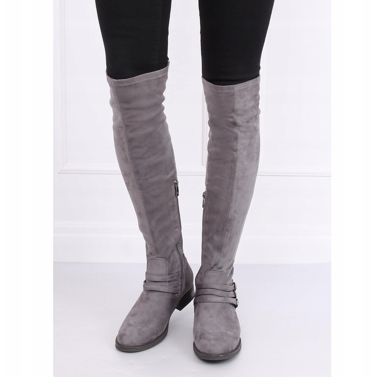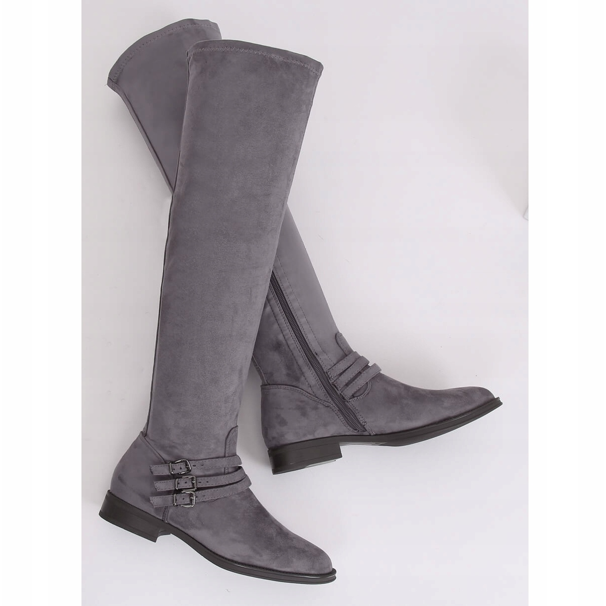 Inna marka Bottes cavalières en daim grises K1807811 Gris