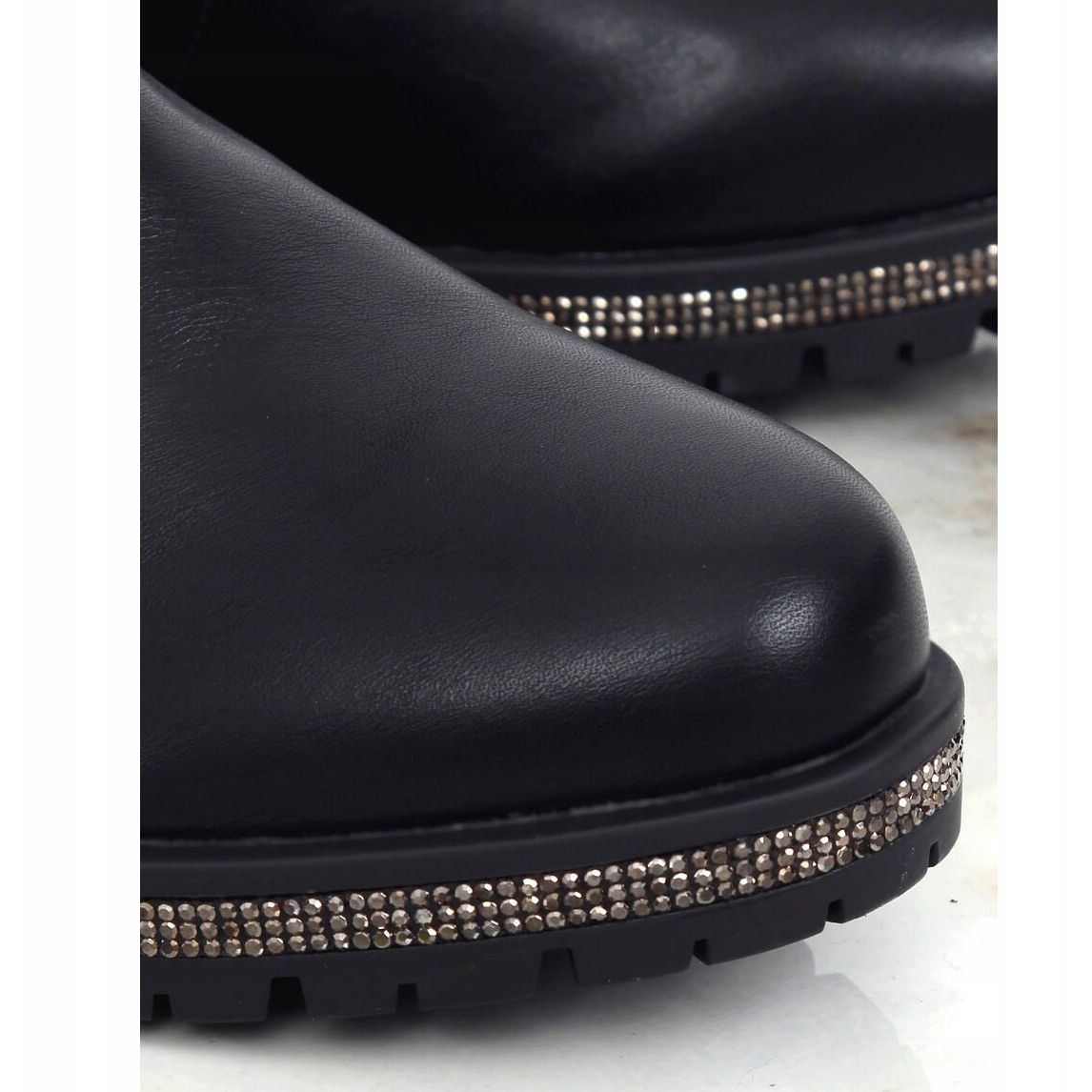 Ces bottines sont un choix parfait pour les femmes qui apprécient la combinaison de modernité et de style classique. Grâce aux strass décoratifs et aux strass, chaque pas dans ces chaussures sera plein de brillance. Parfait pour un usage quotidien, pour le travail ou pour des réunions entre amis - SG-501 Black est un incontournable de toute garde-robe !