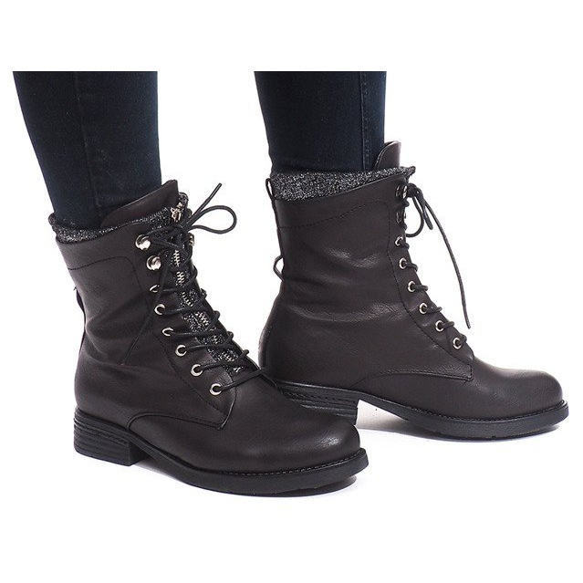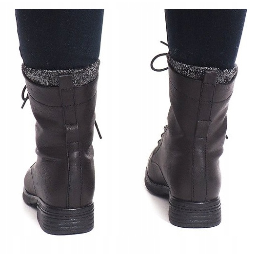 La hauteur supérieure d'environ 15 cm protège parfaitement la cheville et le bout rond ajoute un caractère classique. Les bottes sont montées sur un talon plat de 3 cm de haut, ce qui les rend confortables au quotidien, tout en soulignant le style féminin. La fermeture à lacets permet non seulement un ajustement parfait au pied, mais donne également aux chaussures un look tendance.