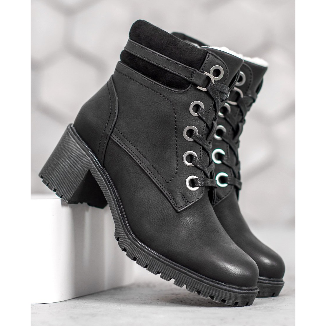 Lorsque vous portez les bottes, vous pouvez profiter de la stabilité grâce à la semelle crantée, parfaite pour diverses surfaces. La tige de 6 cm de hauteur ajoute une silhouette élancée et le nez rond assure un confort de port. Les lacets et la fermeture éclair permettent d'enfiler et de retirer facilement les chaussures.