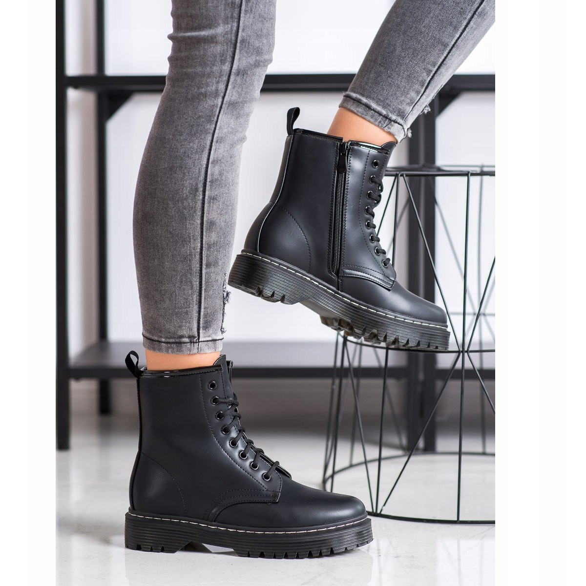 Découvrez un style et un confort uniques avec les bottes Weide Warm en cuir écologique de couleur noire. Ces bottines tendance pour femme sont le choix parfait pour la saison automne/hiver, alliant style sportif et rock.