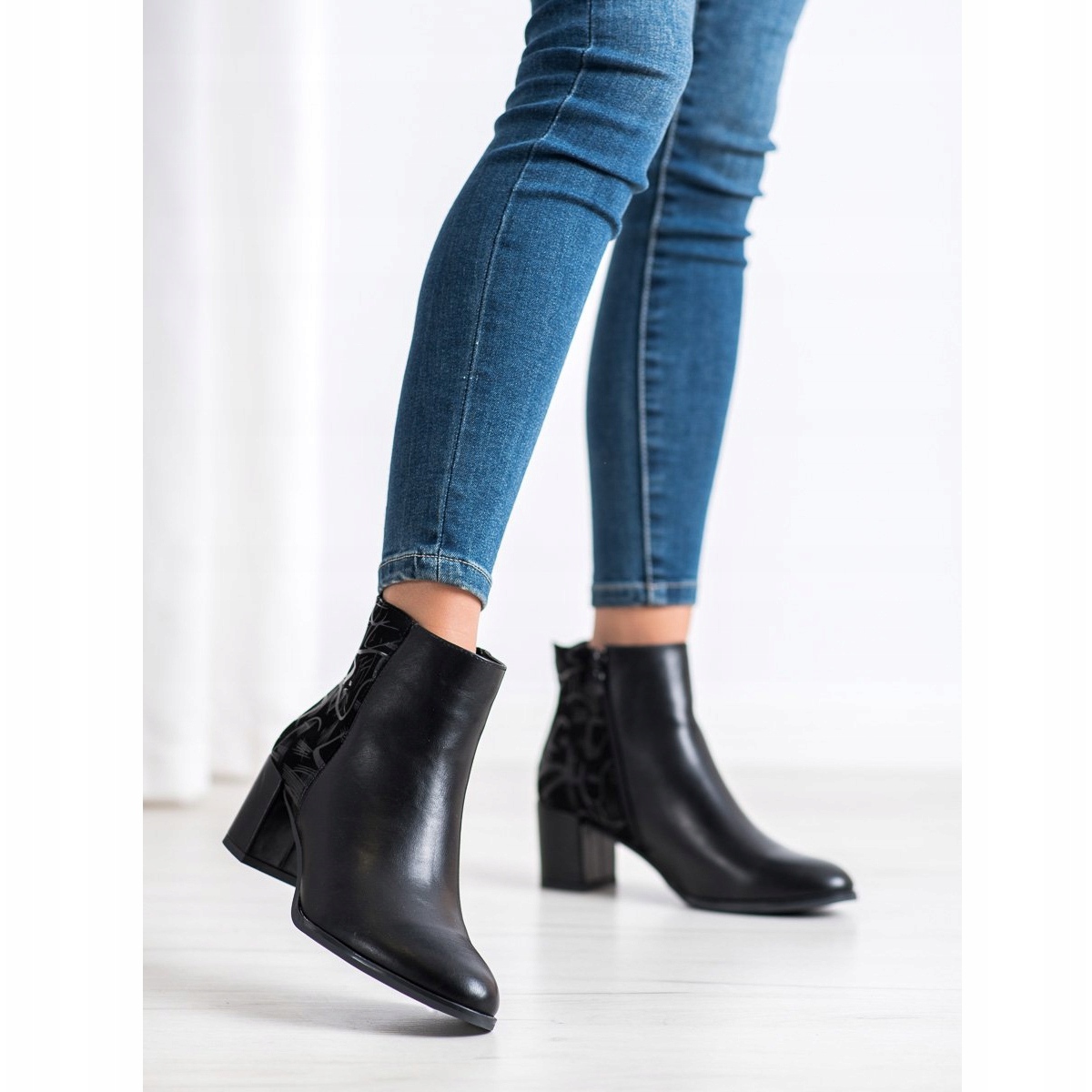 Fabriquées en cuir écologique de haute qualité, les bottines Sergio Leone sont extrêmement élégantes. Un bout rond et un talon souple intégré ajoutent de l'élégance. La hauteur du talon de 6 cm les rend non seulement à la mode, mais aussi confortables à porter toute la journée. La semelle en plastique assure une adhérence et un confort de marche adéquats.
