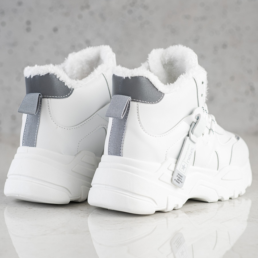 Fabriqués en cuir écologique, ils se caractérisent par une couleur blanche esthétique qui s'agencera à de nombreux styles. La doublure en textile doux et l'intérieur en fourrure rendent ces baskets non seulement à la mode, mais aussi extrêmement confortables et chaudes, ce qui en fait un choix idéal pour les journées d'automne et d'hiver.