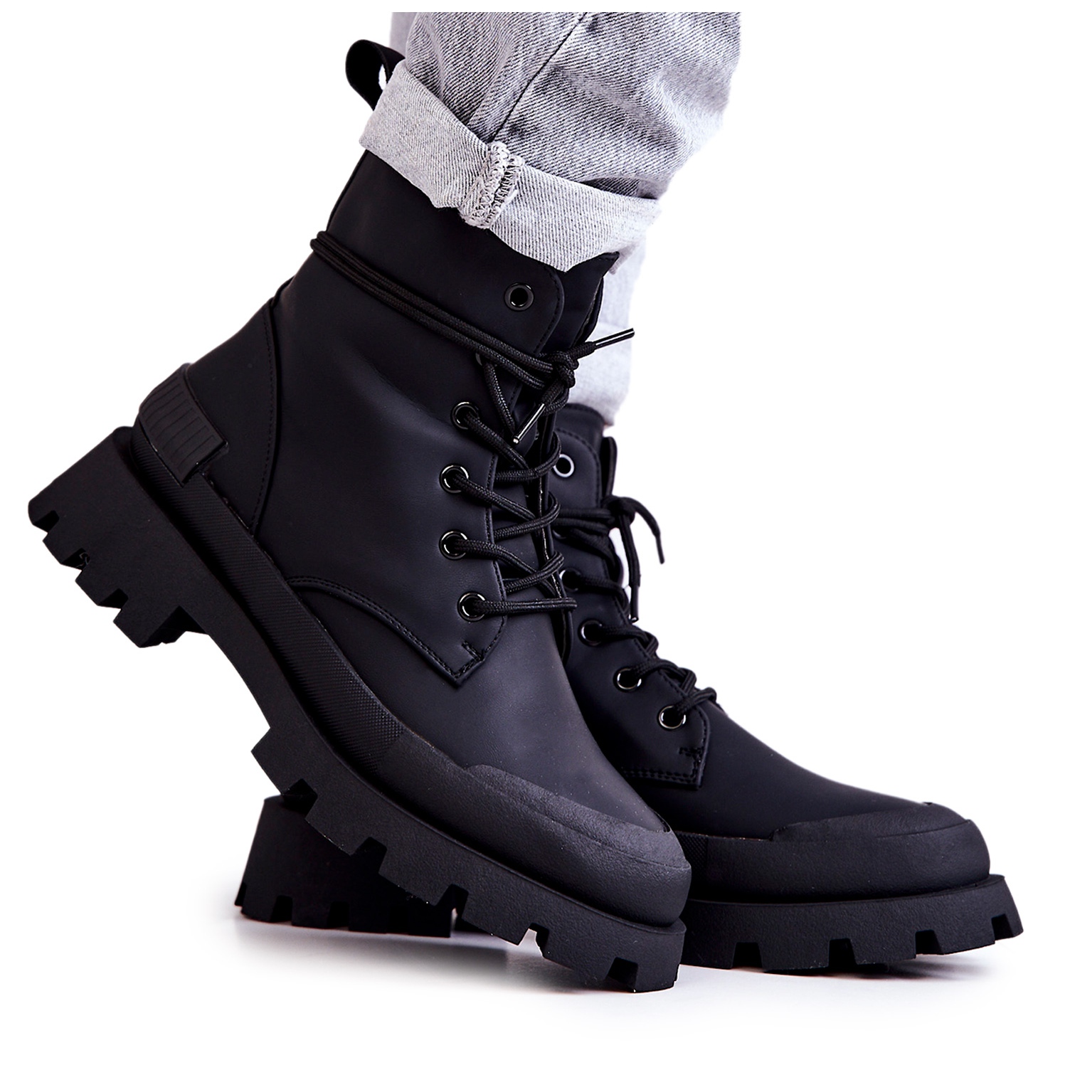 Bottes Chaudes En Cuir Attachées Noir Racquell