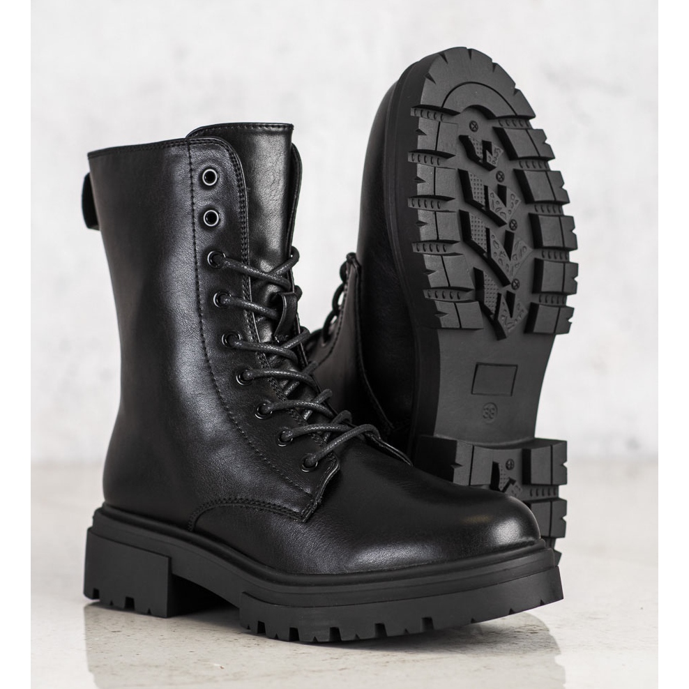 Les bottes sont fabriquées en simili cuir de haute qualité, ce qui les rend non seulement esthétiques, mais également respectueuses de l'environnement. L'isolation de l'intérieur des chaussures garantit la chaleur même les jours les plus froids, et la doublure textile assure un confort de port. Une semelle synthétique solide avec bande de roulement est parfaite aussi bien sur les trottoirs de la ville que lors des sorties du week-end sur le terrain.