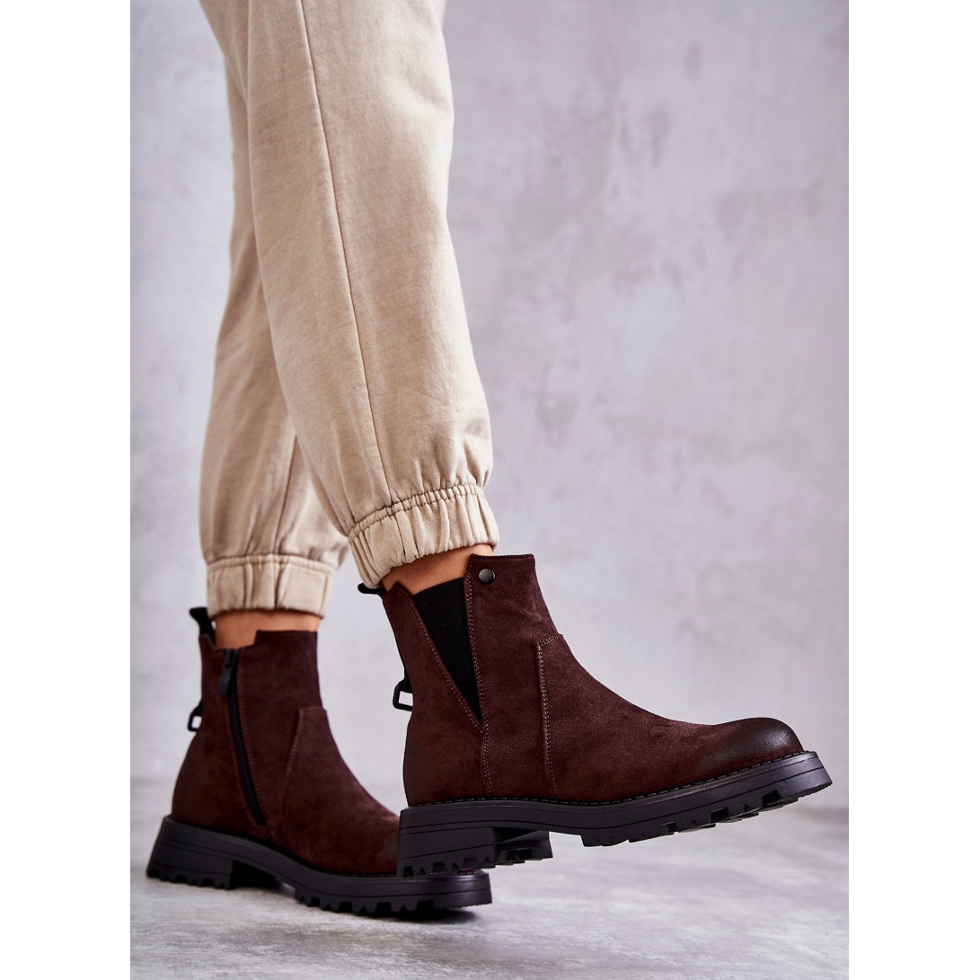 Découvrez les bottes PJ1 uniques - des bottes de travail isolées en daim avec un talon plat dans une belle teinte marron, qui s'adaptent parfaitement aux dernières tendances ! Ce sont des bottines classiques pour femmes qui sont un incontournable cet automne. Leur design élégant est enrichi d'une décoration subtile avec une inscription au dos, qui attire l'attention et donne du caractère à n'importe quel style.
