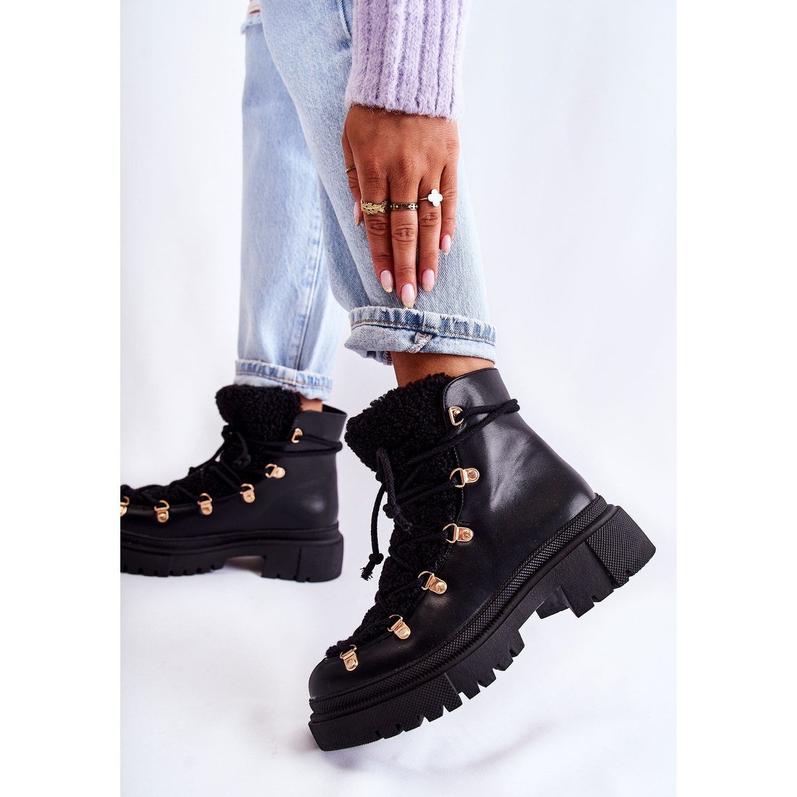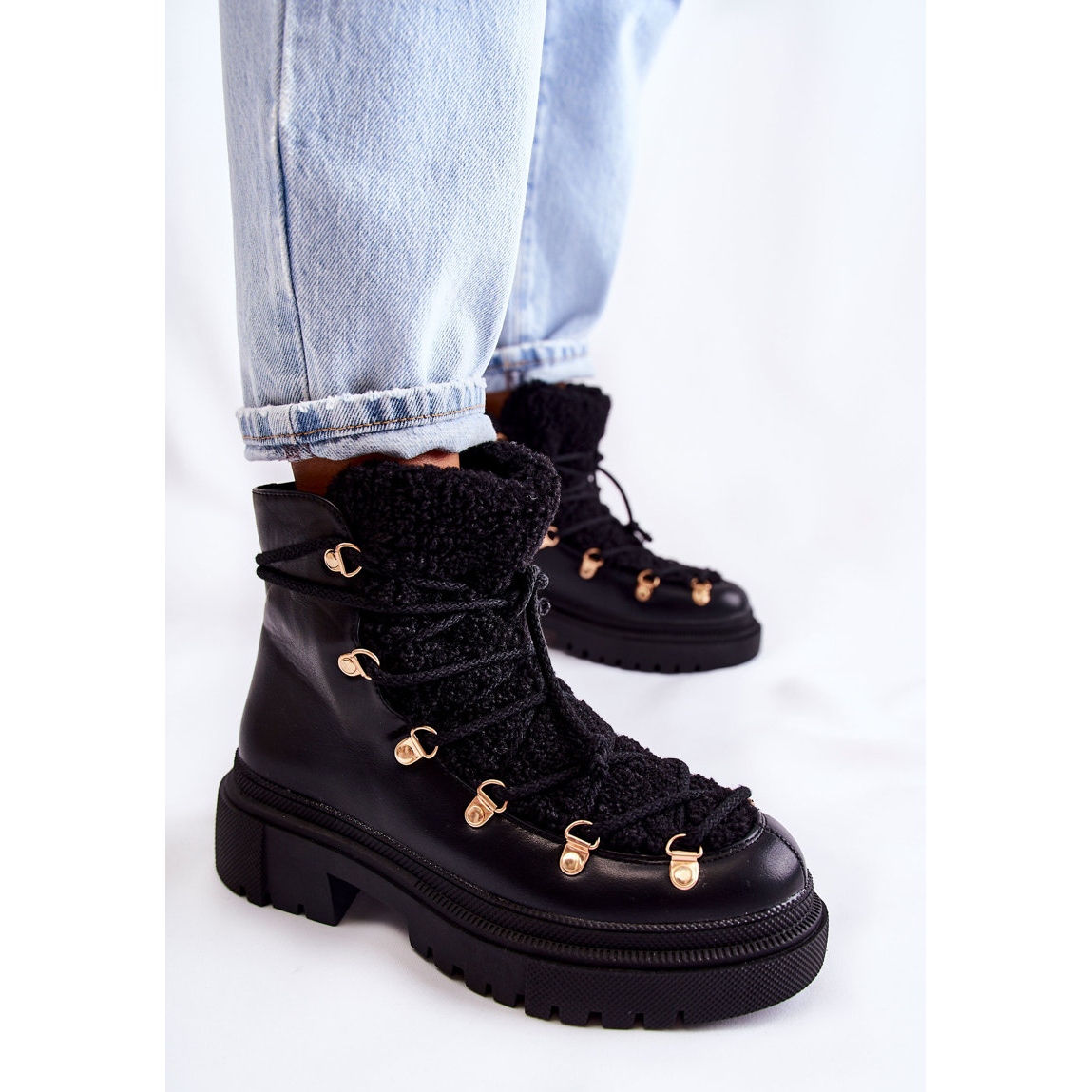 Détails: Bottes chaudes en éco-cuir Noir Arisa Trappers le noir