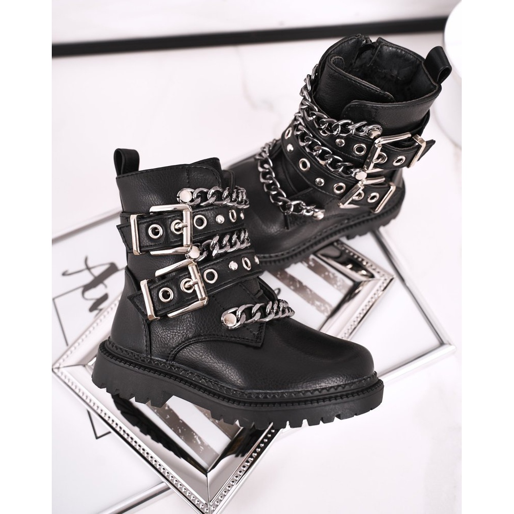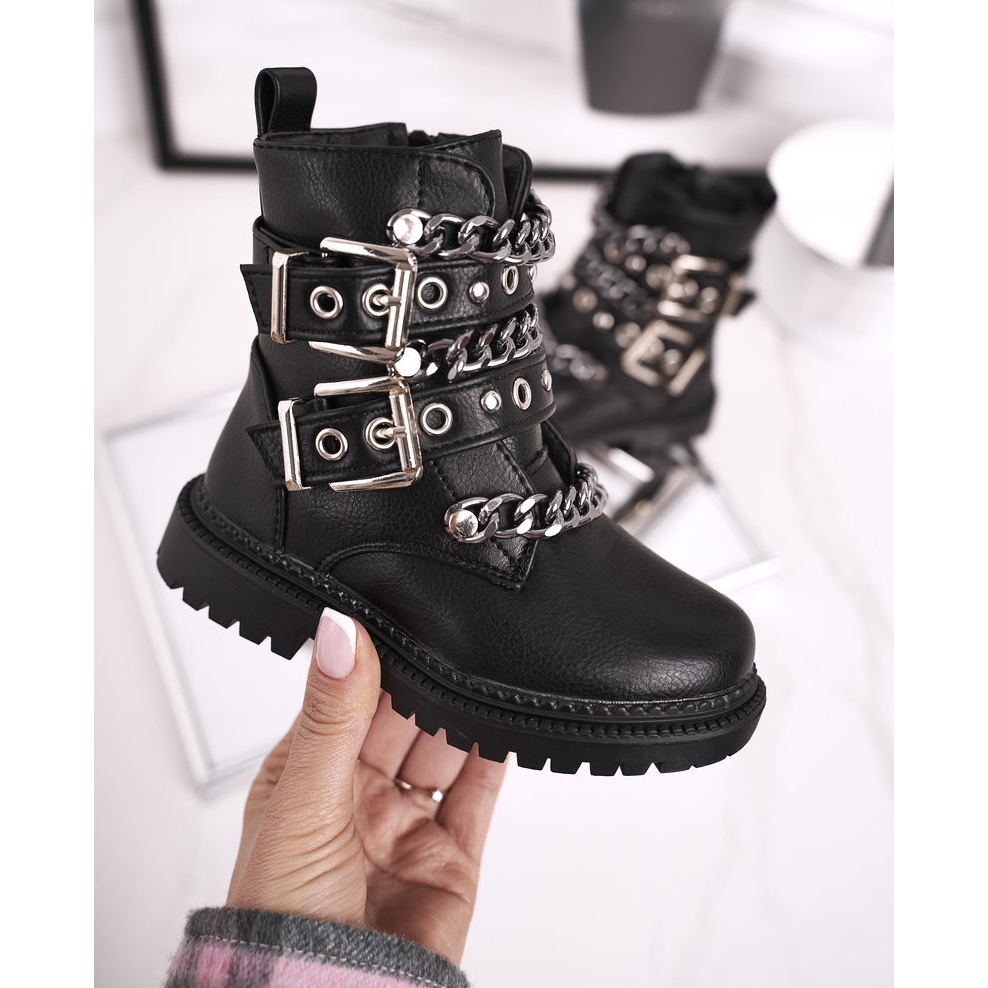 Nous vous présentons les bottes isolées pour enfants FRROCK avec boucles en fourrure en noir - le choix parfait pour les petites fashionistas ! Ces bottes uniques se distinguent par leur design moderne, alliant élégance et fonctionnalité. L'utilisation de boucles et de chaînes en argent leur donne du caractère, ce qui les rend non seulement pratiques, mais aussi élégantes.