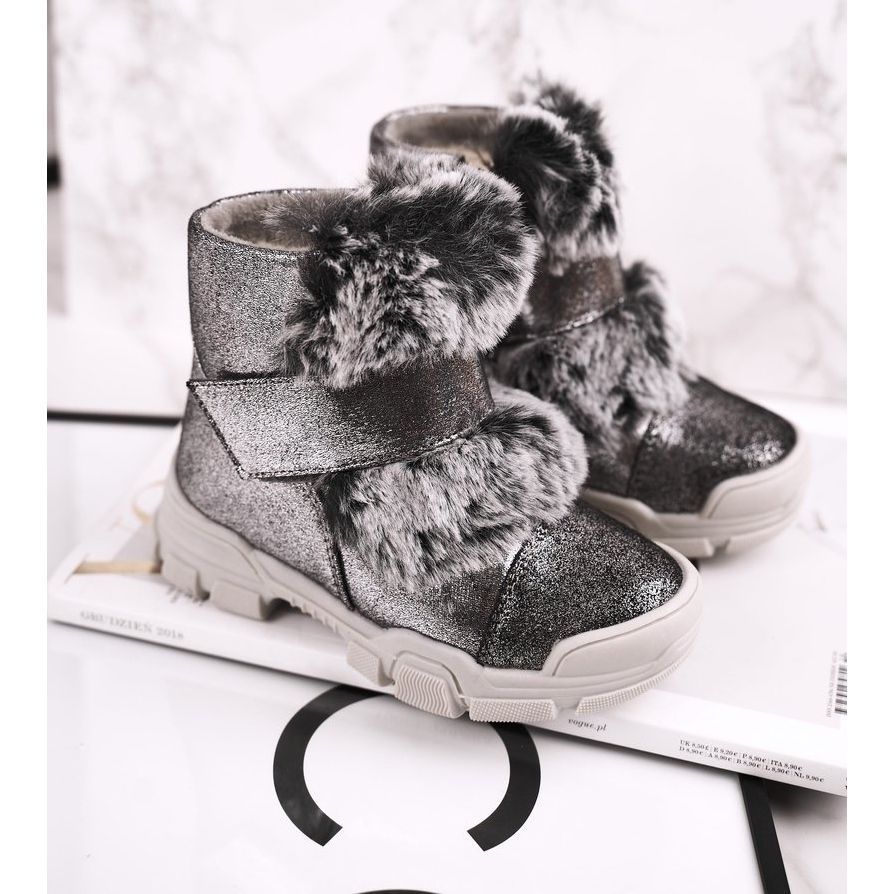 Détails: Apawwa Bottes Chaudes Enfant Velcro Fourrure Gris Husar