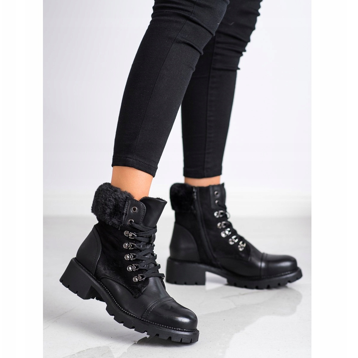Les bottes sont équipées d'une fermeture à lacets et d'une fermeture éclair pratiques, ce qui les rend plus faciles à enfiler et à ajuster au pied. Le bout rond ajoute de la légèreté et donne au modèle une allure exceptionnellement féminine. De plus, le talon bloc de 4,5 centimètres ajoute non seulement de l'élégance, mais assure également du confort lors de longues promenades.