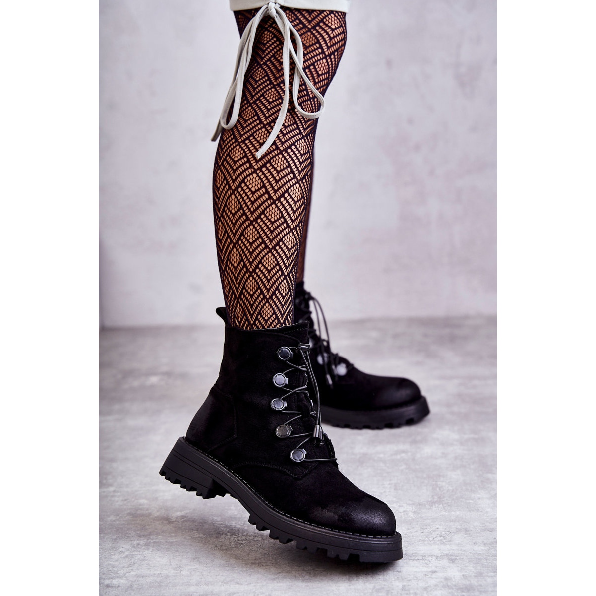 Les bottes se distinguent par leur design fonctionnel. Elles disposent d'un cordon de serrage sur le devant et d'une fermeture éclair située sur le côté de la tige, ce qui facilite grandement l'enfilage et le retrait des chaussures. Grâce au talon plat avec bande de roulement, ces chaussures offrent stabilité et confort à chaque pas, ce qui est particulièrement important au quotidien. De plus, le talon renforcé augmente le confort de port en protégeant les pieds contre la déformation.