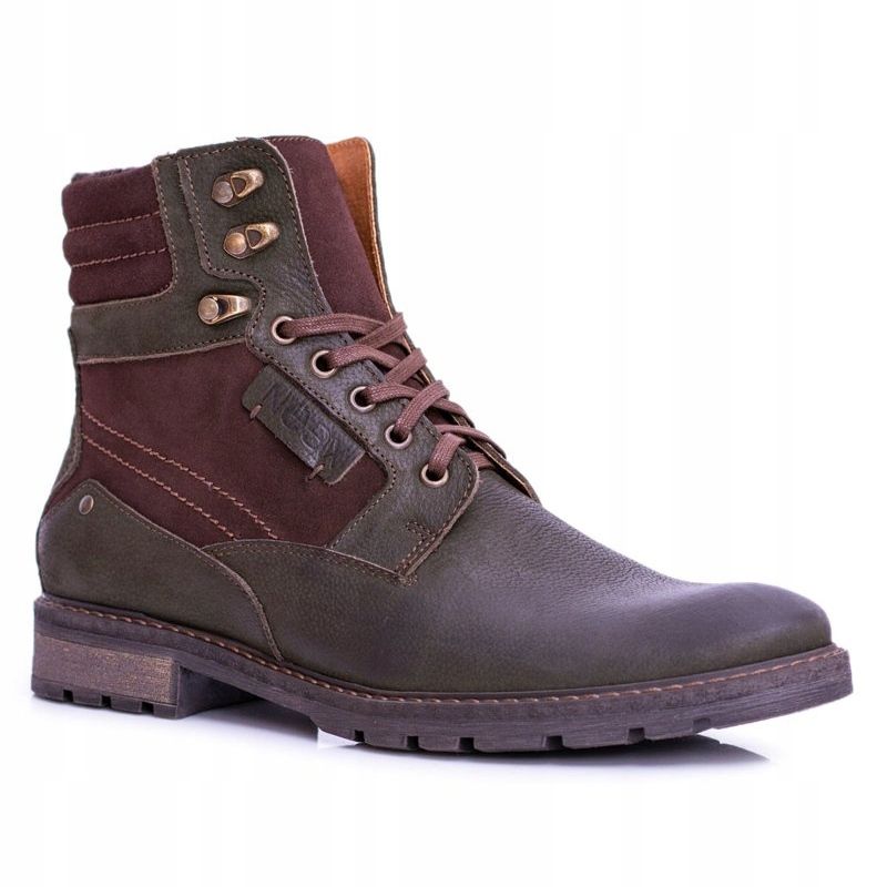 Détails: Bottes chaudes Neex en cuir olive pour hommes Grigor brun vert
