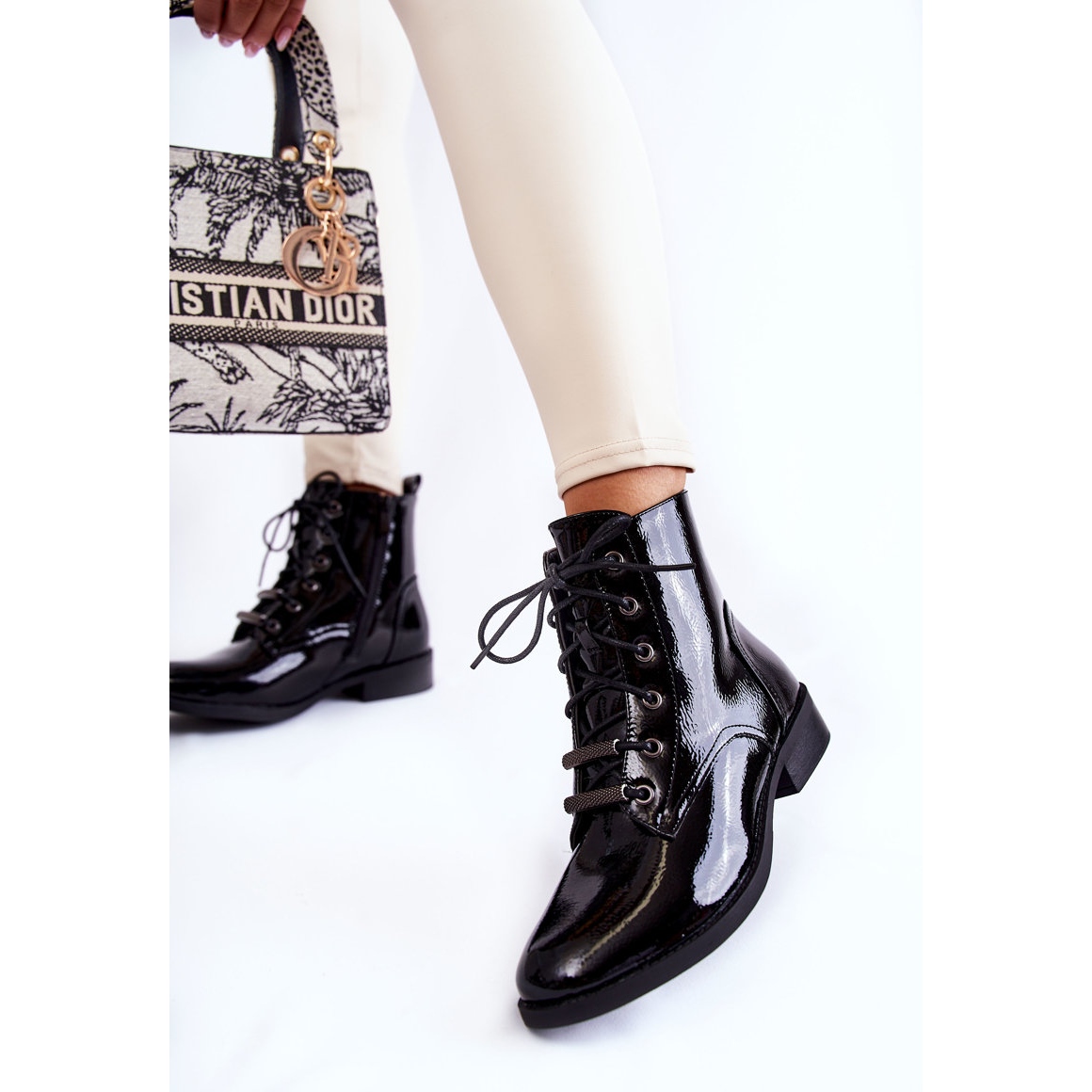 Les bottes ont un talon plat de 3,5 cm de haut, ce qui les rend parfaites pour un usage quotidien. Un laçage classique sur le devant, orné de plaques stylées, leur confère un caractère unique, tandis que la fermeture éclair sur le côté de la tige facilite l'enfilage et le retrait des chaussures. De plus, un talon renforcé assure stabilité et confort.
