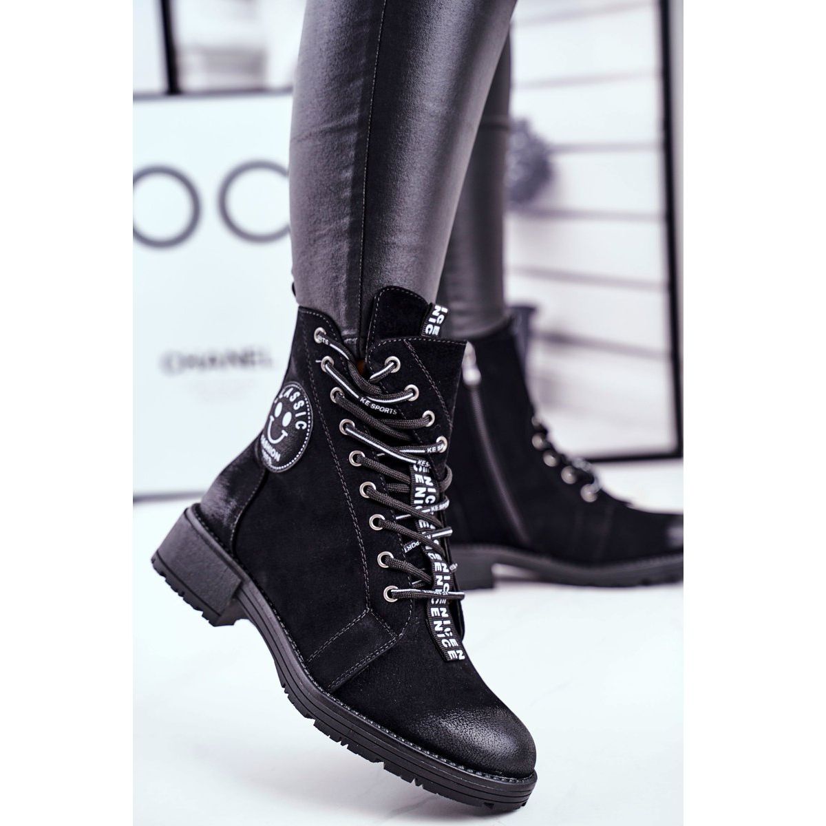 Les bottes ont un bout rond et ont été conçues avec une attention aux détails. Décorés d'une bande noire avec les inscriptions « NICE » et d'un laçage inhabituel, ils attireront certainement l'attention et feront ressortir n'importe quel style. Un talon plat de 4 cm de haut le rend confortable à porter toute la journée, et la hauteur supérieure de 14 cm ajoute du caractère et de l'attractivité.