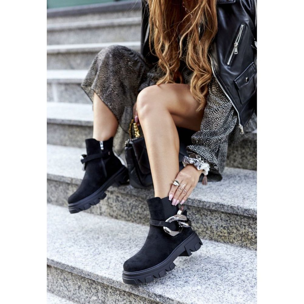 La tige des bottes se distingue par un ajout tendance sous la forme d'une grande chaîne, qui donne du caractère et met en valeur les tendances de la mode actuelles. De plus, cette décoration peut être détachée, ce qui vous permet d'ajuster l'apparence des chaussures selon vos propres préférences.