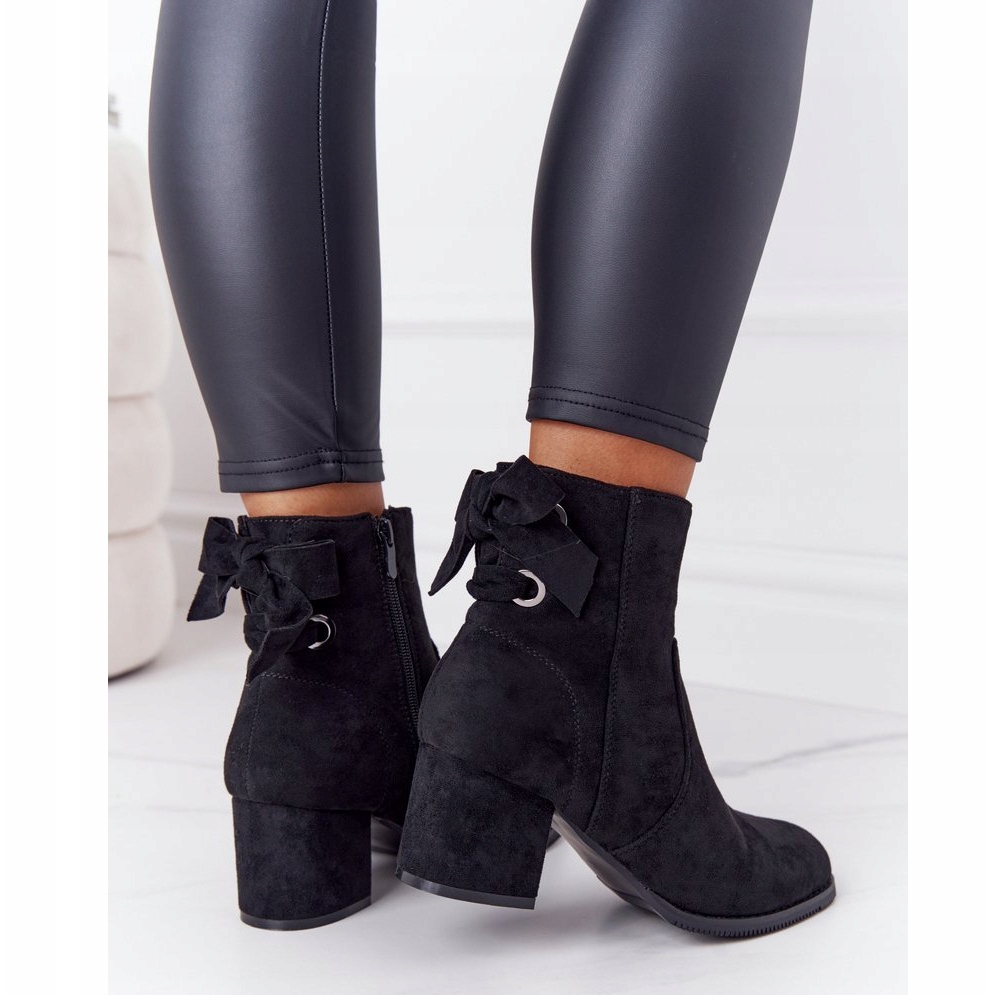 La couleur noire des bottines s'intègre parfaitement dans les dernières tendances, et le bout rond et le nœud décoratif leur confèrent un caractère unique. Le talon bloc de 6,5 cm de haut garantit stabilité et confort de port, parfait pour les longues promenades ou les sorties en ville. Doté d'une fermeture éclair, ce modèle est extrêmement pratique, et la largeur supérieure de 25 cm et la largeur G les rendent parfaitement adaptés au pied.