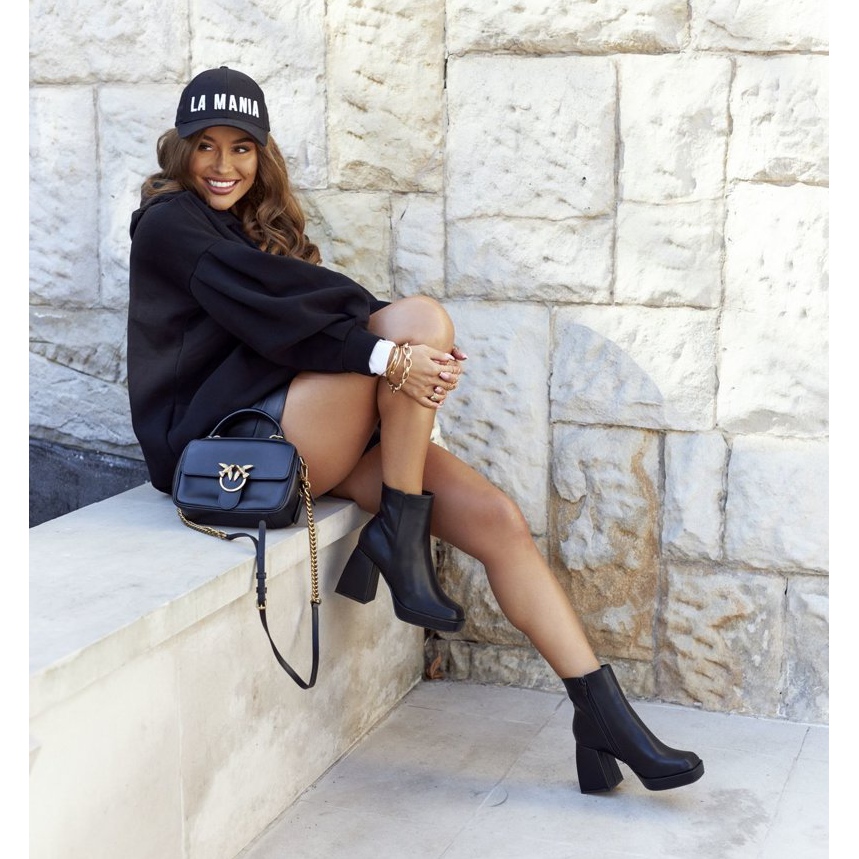 L'intérieur des bottes est doublé d'un couvre-chaussure agréable au toucher, qui assure une sensation de chaleur et de confort même les jours les plus froids. La tige en cuir écologique souple les rend non seulement élégantes, mais également respectueuses de l'environnement. Grâce à la fermeture éclair cousue sur le côté, l'enfilage devient rapide et pratique.