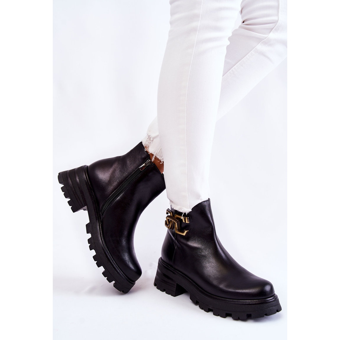 Des bottes féminines classiques et à la mode en cuir naturel - parfait pour les jours plus frais. Le modèle est intégré sur un talon stable et plat (6 cm) et une plate-forme (3,5 cm), ce qui assure le confort même pendant le port plus long. À l'intérieur, il y a une isolation sous la forme d'une couverture de chaussures douces et d'un talon raidi, ce qui donne une chaleur supplémentaire et une stabilisation du pied. Une chaîne élégante en Upper ajoute du caractère et rend les bottes idéales pour les stylifications de sortie quotidiennes et plus.