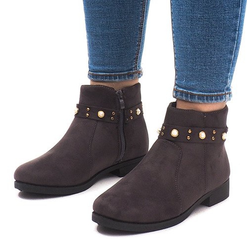 La fermeture éclair pratique vous permet d'enfiler et d'enlever rapidement les chaussures, et l'accent à la mode sous forme de strass rend les bottes non seulement fonctionnelles, mais attire également l'attention par leur aspect original. La couleur grise s'accorde parfaitement avec de nombreuses tenues, et la semelle noire leur donne un style moderne et caractéristique.