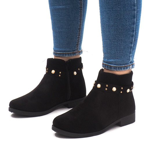 Les bottes sont fabriquées en cuir suédé écologique, ce qui leur donne un look élégant, tandis que des strass supplémentaires soulignent leur caractère unique. Les semelles synthétiques noires garantissent durabilité et confort d'utilisation, et le bout rond ajoute un style classique.