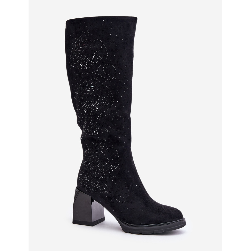 S.Barski Bottes chauffantes au genou décorées pour femmes sur talon haut MR880-158 noir